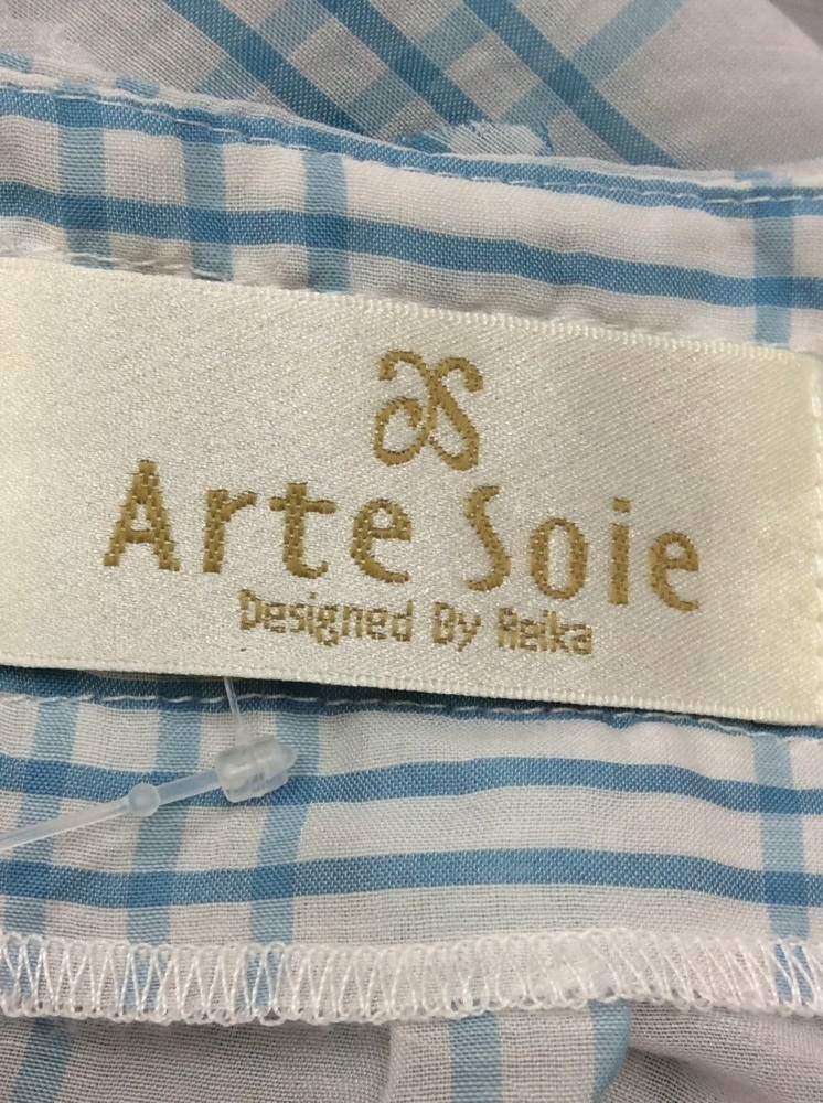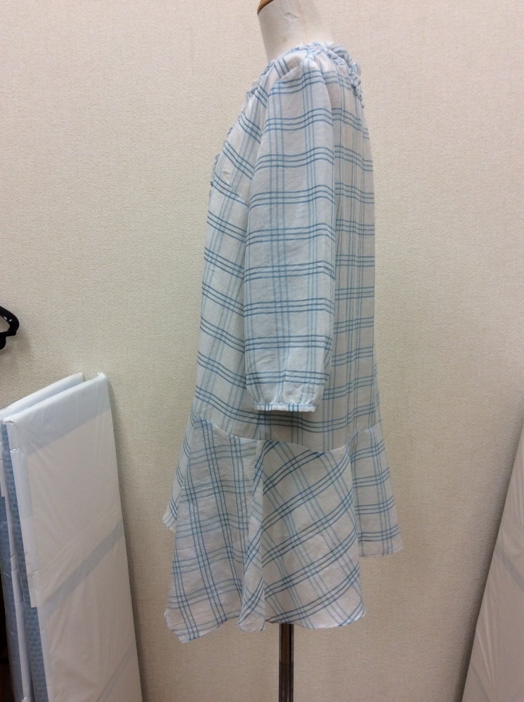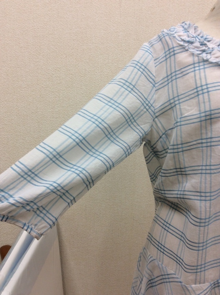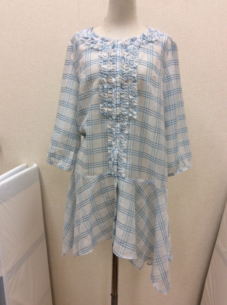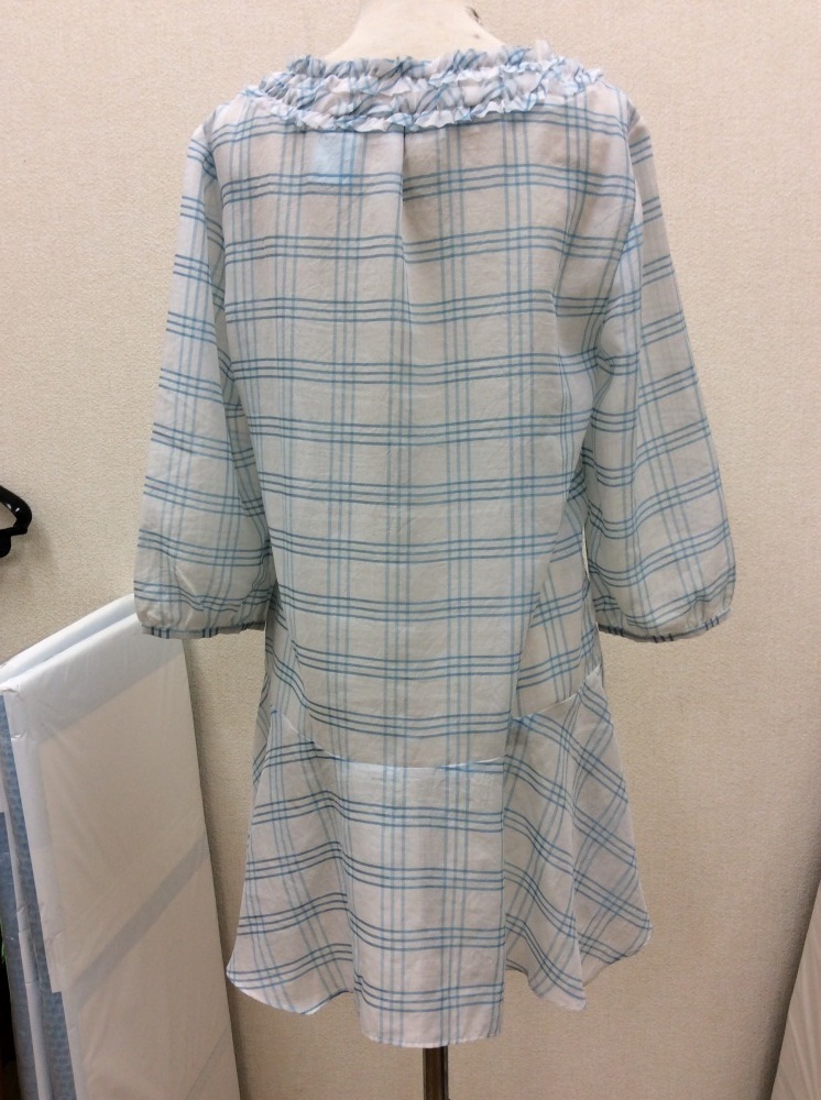 管理番号:40^126320 アルテソワ(Arte Soie) 白×水色チェックブラウスチュニック 表示サイズ:9 実寸(参考)