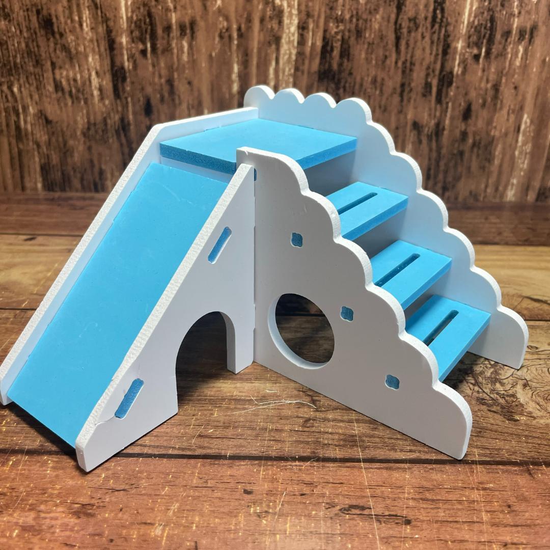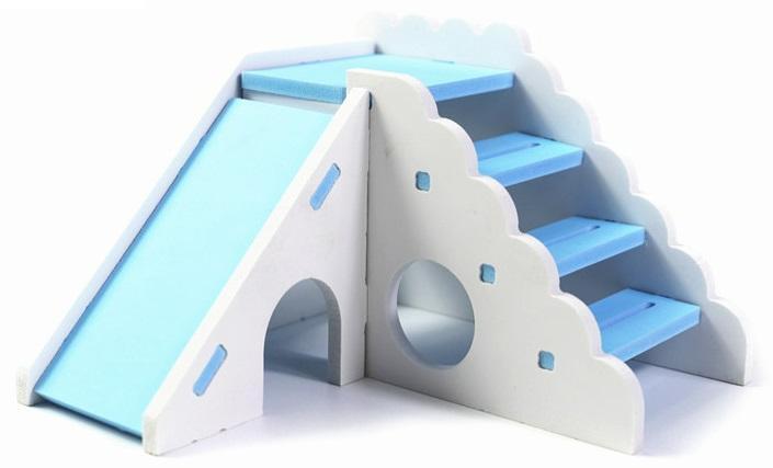 新品 ハムスター ハウス かじり木 組み立て式 隠れ家 滑り台 公園 トレーニングジム ロボロフスキー ジャンガリアン 水色 青色
