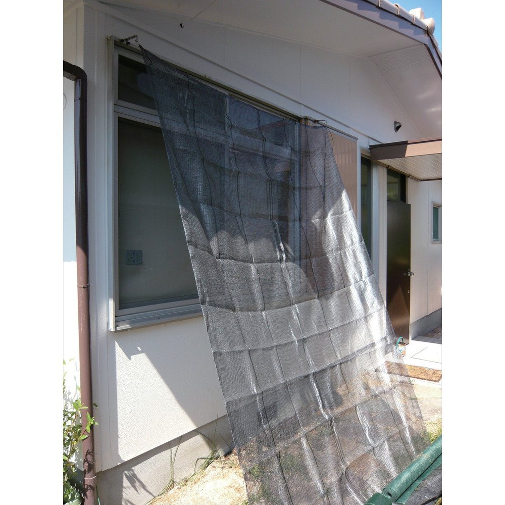 住宅周りや、アウトドアでも手軽に使用できる、日よけ 【用途】 日よけ 【特徴】 ・遮光ネットの両端にYシャツのボタン止めのようなボタンホール加工がされており、付属のロープを通してカーテンのように使用できる ・張り方のよっては、縦・横・斜めなど使用する場所を選ばず、使用できる ・窓際の遮光や屋外でのちょっとした場面での遮光にも使用できる 【注意事項】 ※強風時の使用は避けて下さい。 ※基本的に室外でご利用頂き、ネットの内側には十分な通気を確保するようにして使用して下さい。