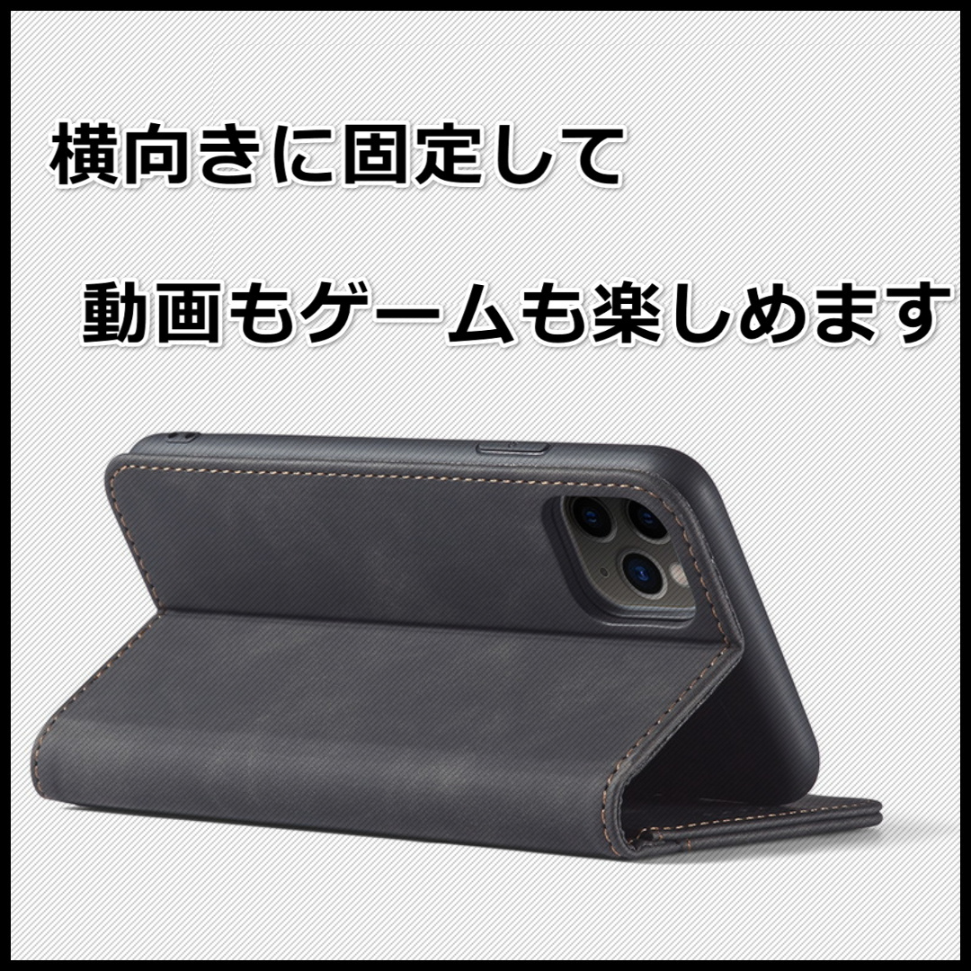 ●5枚目の写真のように、ケースを外側に折り曲げることによって、スマートフォン本体を横向きに固定することができ動画やゲームを楽しめます。