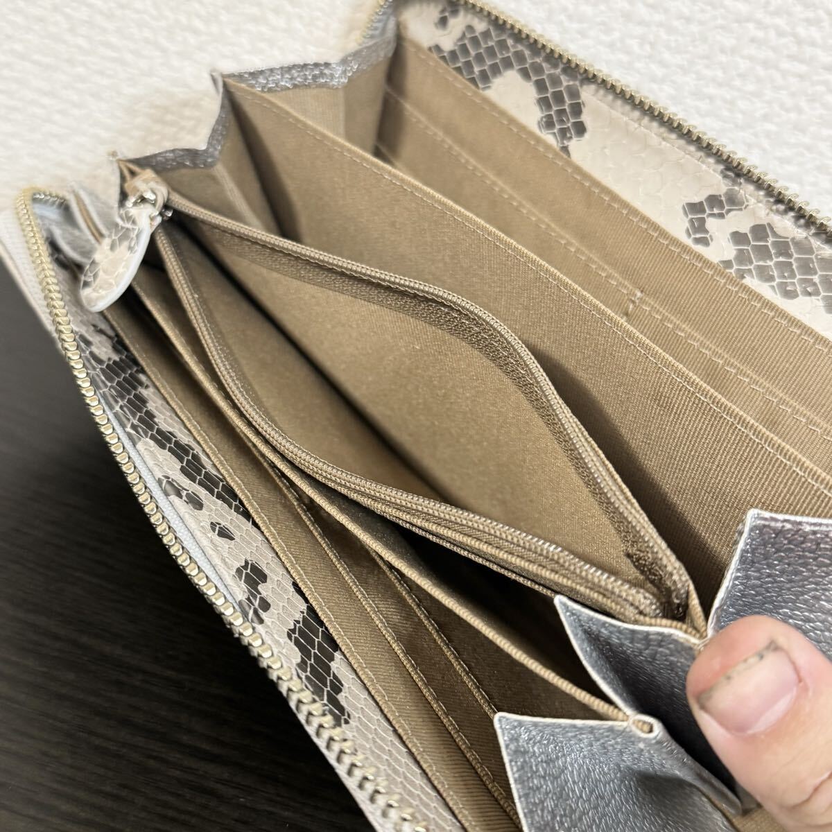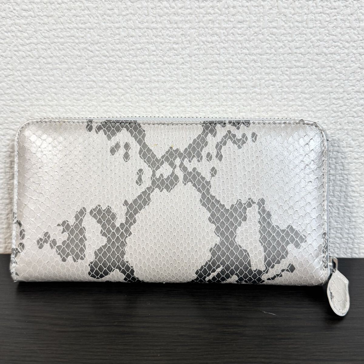 ダイヤモンドパイソン本革のラウンドファスナー長財布(シルバー)②になります。