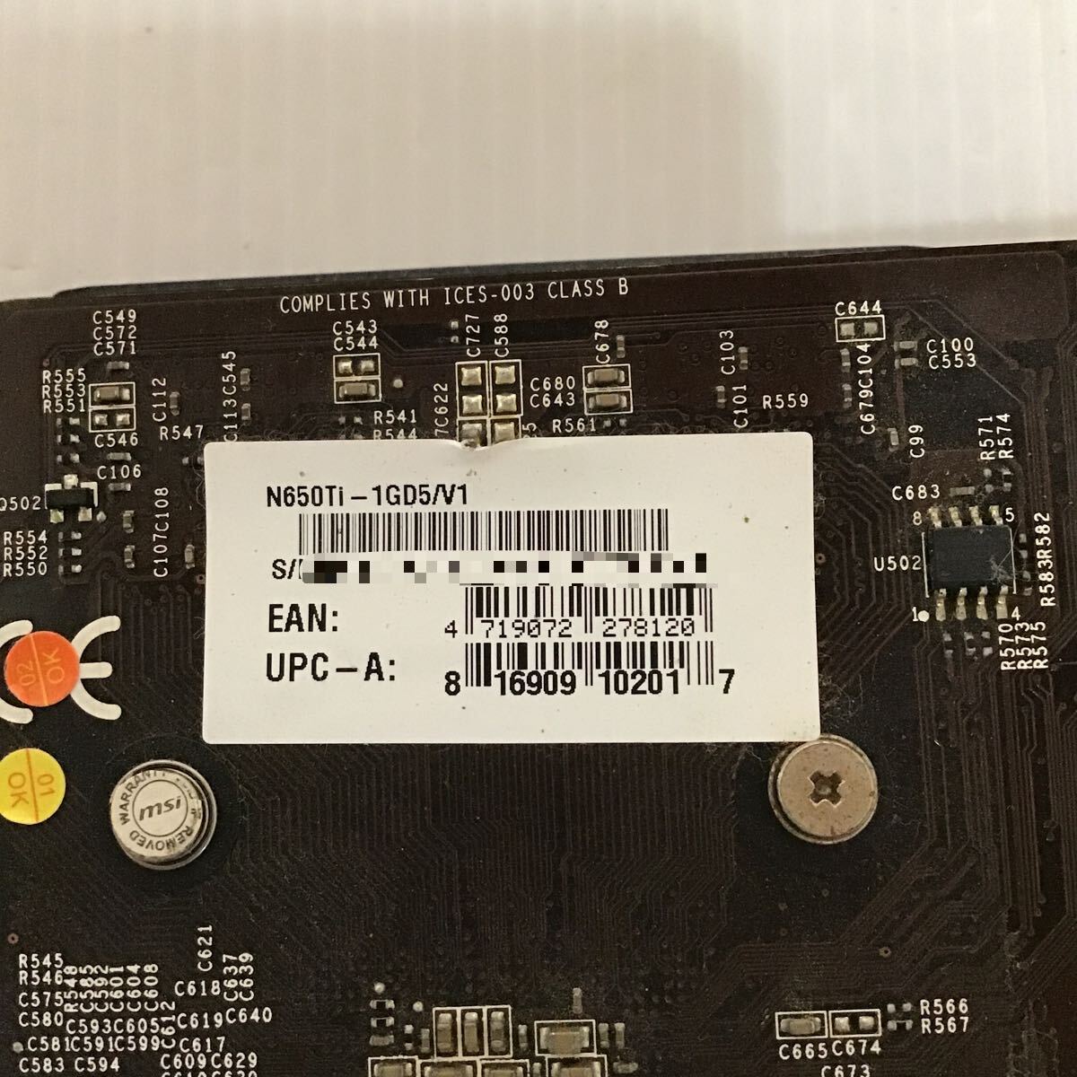 【中古】MSI N650Ti-1GD5 グラフィックボード 管理番号cg615