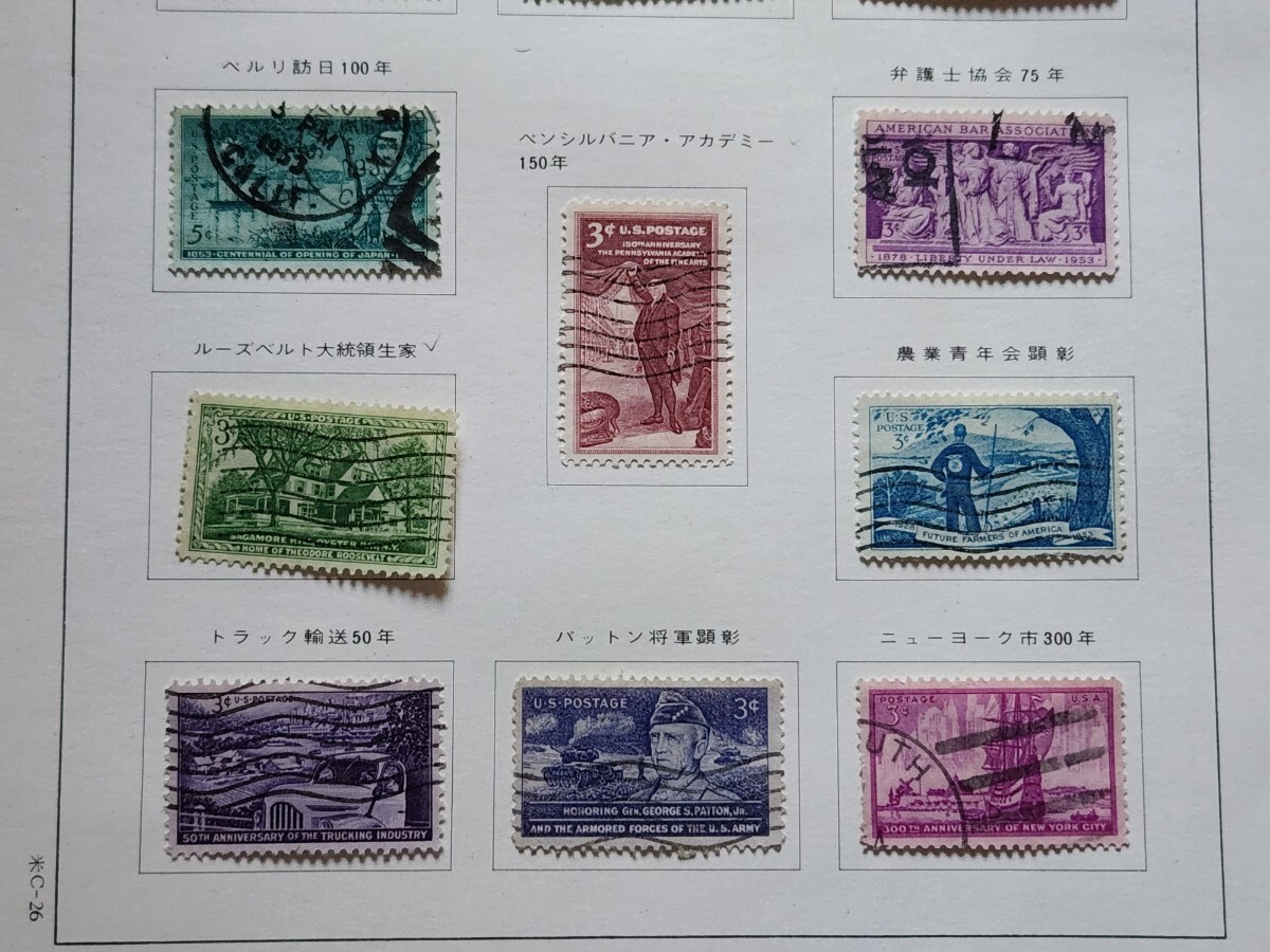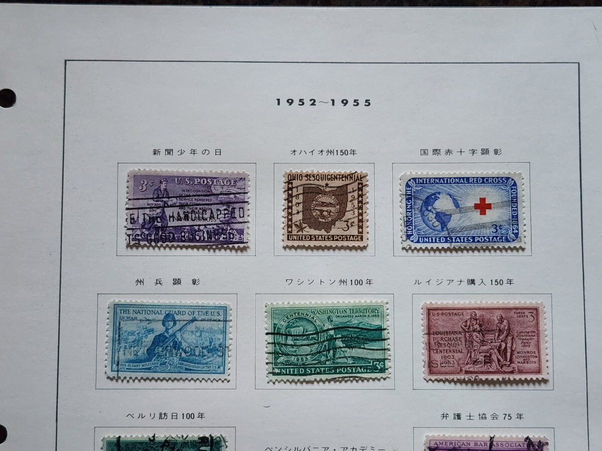 1952年から1955年の使用済記念切手のリーフです。いずれもヒンジ貼り。