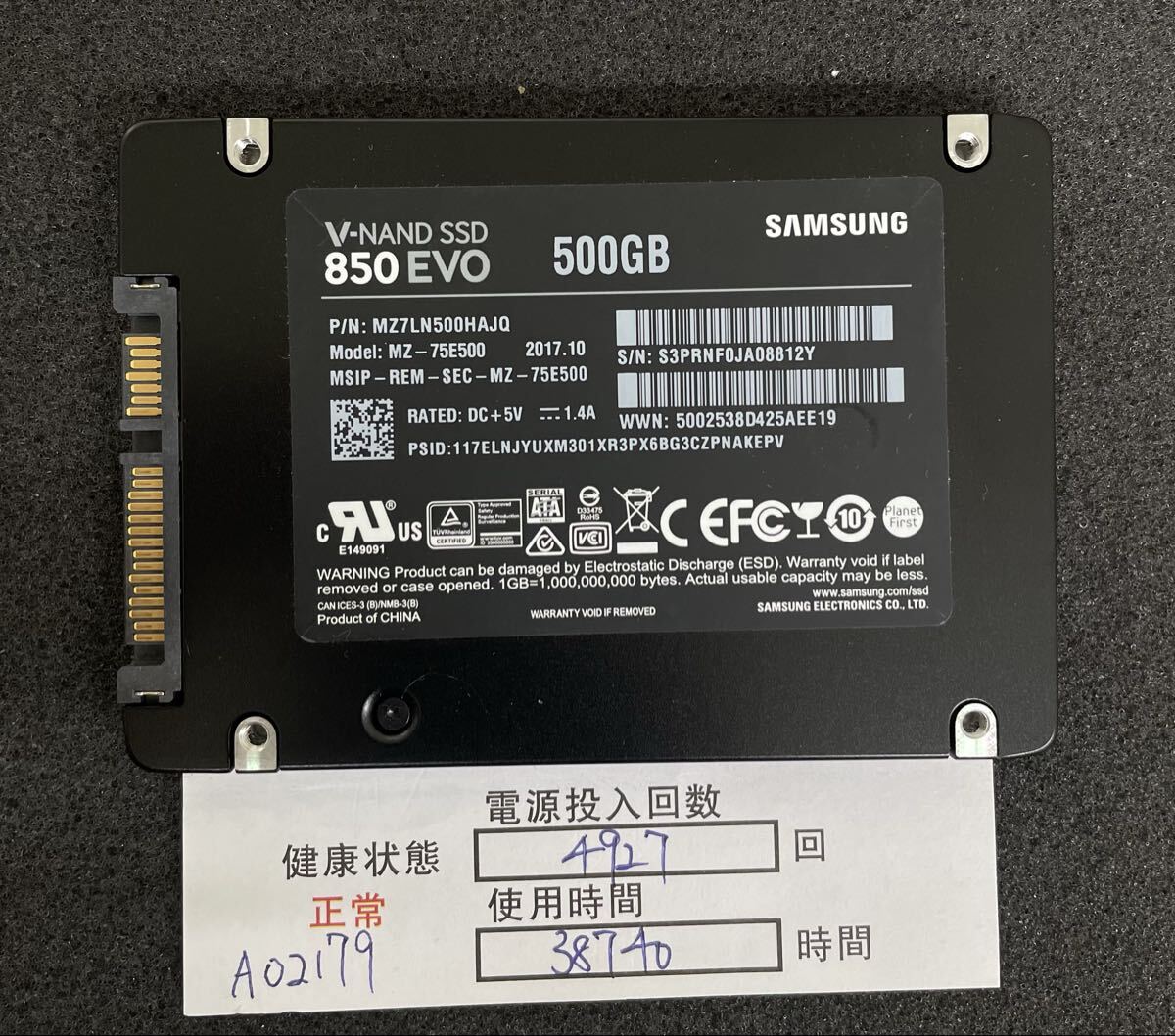 A02179/中古品 /2.5インチSATA SSD/Samsung/500GB/動作確認済み /返品返金対応 /納品書発行可(商品説明文ご確認下さい)