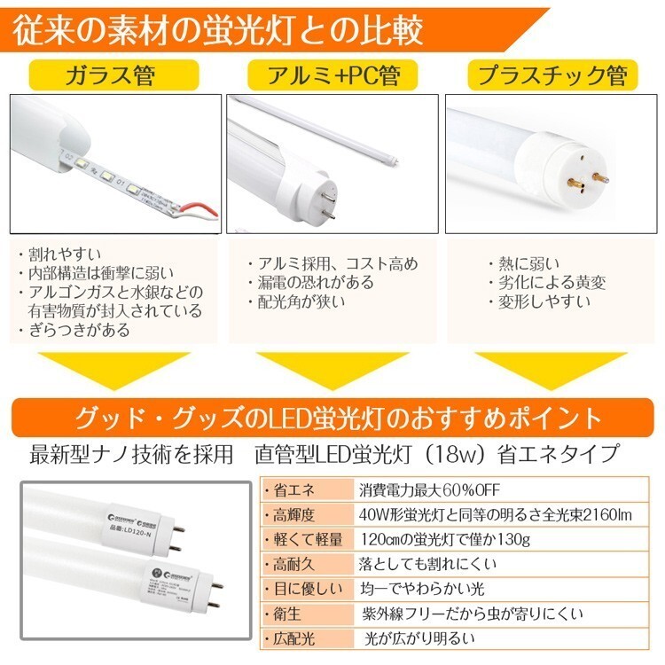 | 品番 | LD120-N(GOODGOODS正規品) | 消費電力 | 18W(40W形) |