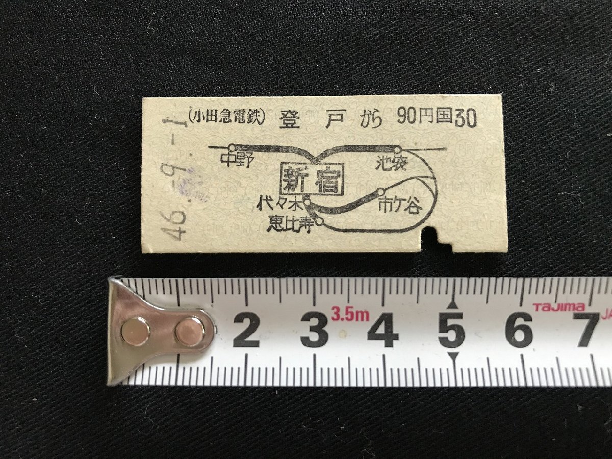 i☆* 古い切符 昭和46.9.1 小田急電鉄 国鉄線 登戸 から 新宿 90円区間 登戸駅発行 乗車券 硬券 下入鋏券 1点 22/C05