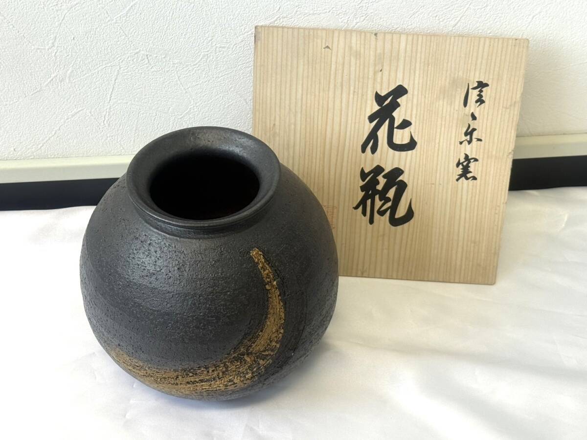 ◎ 1円スタート 花瓶 唐津焼 金彩 壺 陶芸 共箱 骨董 コレクション