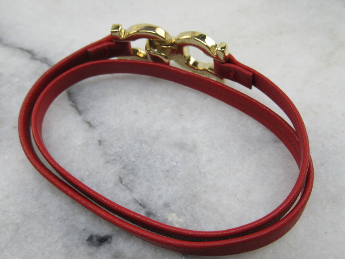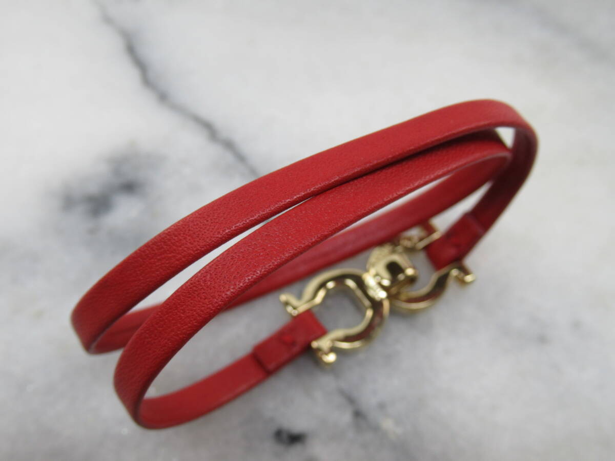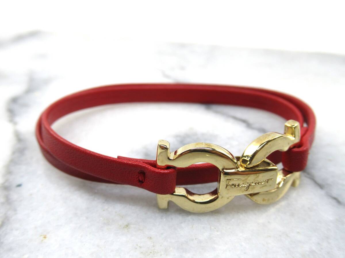 ★パケット発送/同梱不可【B送400円】2360 Salvatore Ferragamo サルヴァトーレフェラガモ レザーブレスレット レッド×ゴールド金具