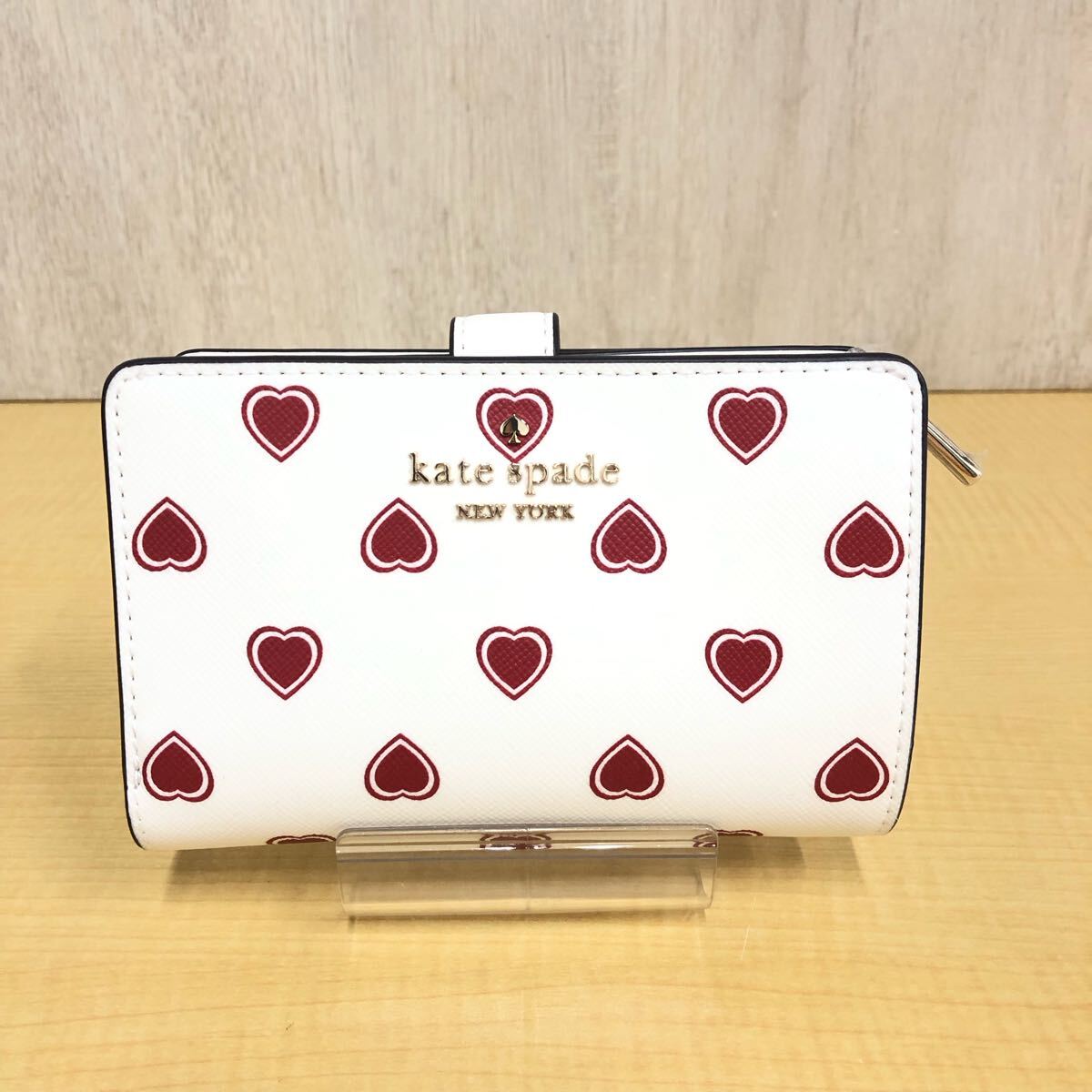 【kate spade】ケイトスペード★二つ折り財布 ホワイト ハート 総柄 レディース KF340 財布 ウォレット