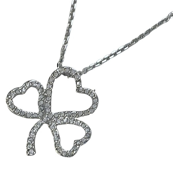 スワロフスキー SWAROVSKI ネックレス - クリア×シルバー クローバー 美品 アクセサリー(首)