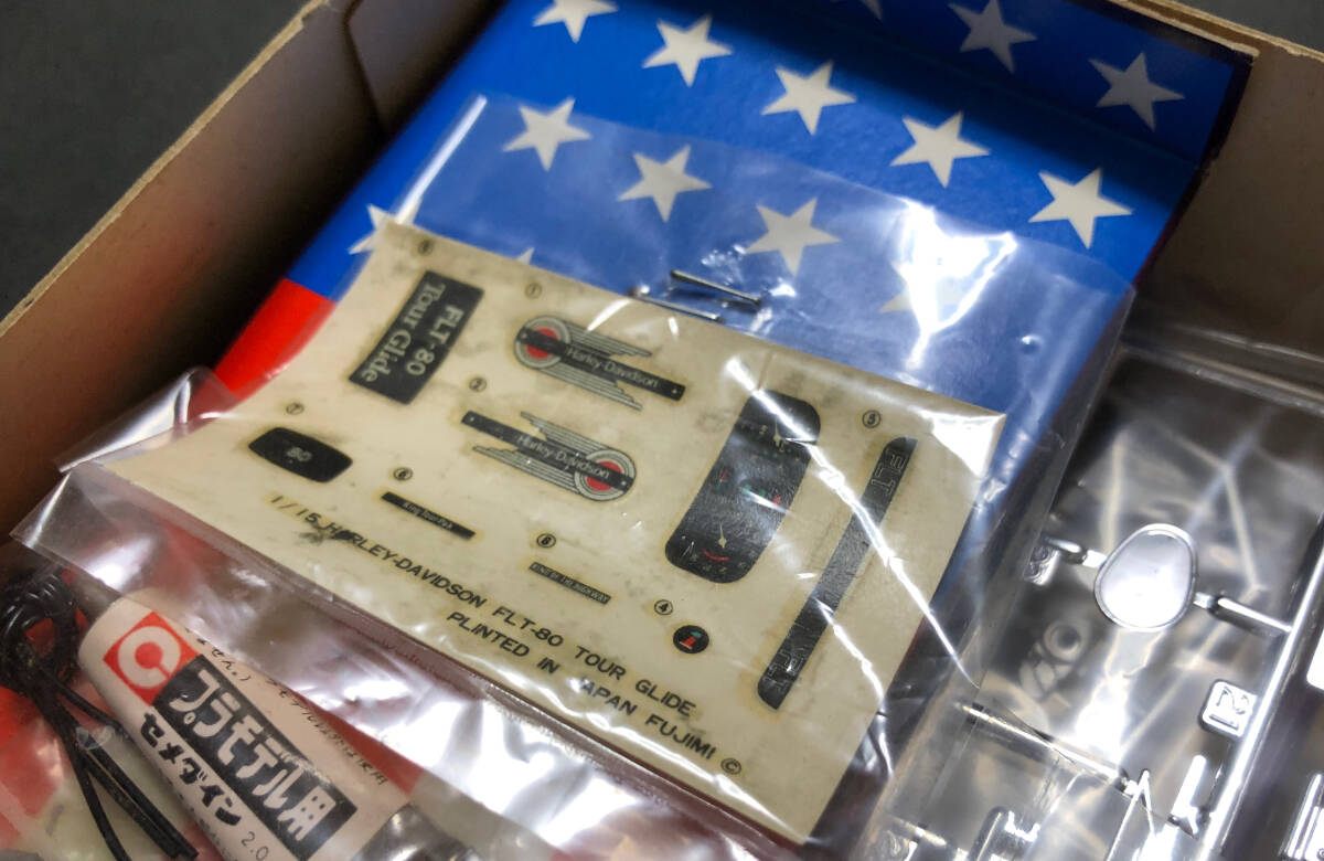 @中古絶版模型堂フジミ1/15ハーレーダビッドソンFLT-80ツアーグライドカリフォルニアハーレーをお譲りします。まとめて仕入れたモノの中にありましたが、当店では扱わない商品で商品知識もありませんので出品します。状態は箱に日焼け傷み凹み等があります。ゴムや金属類、デカール(汚れ見られます)がある場合は古いものですので使えるかどうかわかりません。また一通りパーツの確認はしていますが、内袋未開封品等は細かなパーツの見落としがある可能性がございます。入札後はノークレームノーリターンですので気になる点は入札前にご質問下さい。発送は定形外郵便補償無し簡易梱包660円かゆうパックスマホ割80サイズのみです。ゆうパックご希望の場合は電話番号を取引メッセージからお知らせ下さい。また問い合わせ番号は日々の発送数が多く誤通知防止の為、スマホ割の配達予告通知のみでのお知らせとさせていただいています。こちらをご希望の場合もメールアドレスを取引メッセージからお知らせください。自動車模型専門ですが当店サイト(「czmokeido.3zoku.com/」で検索してください)の商品も同梱発送させていただきます。なお送料は梱包サイズによって変わります。