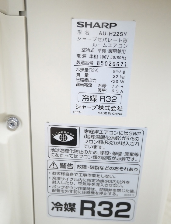 【未使用品】【室外機のみ】シャープ製/ルームエアコン/6畳用/AU-H22SY(7090677-2/2)