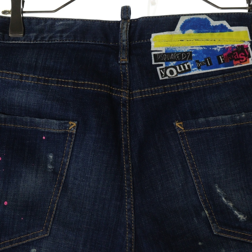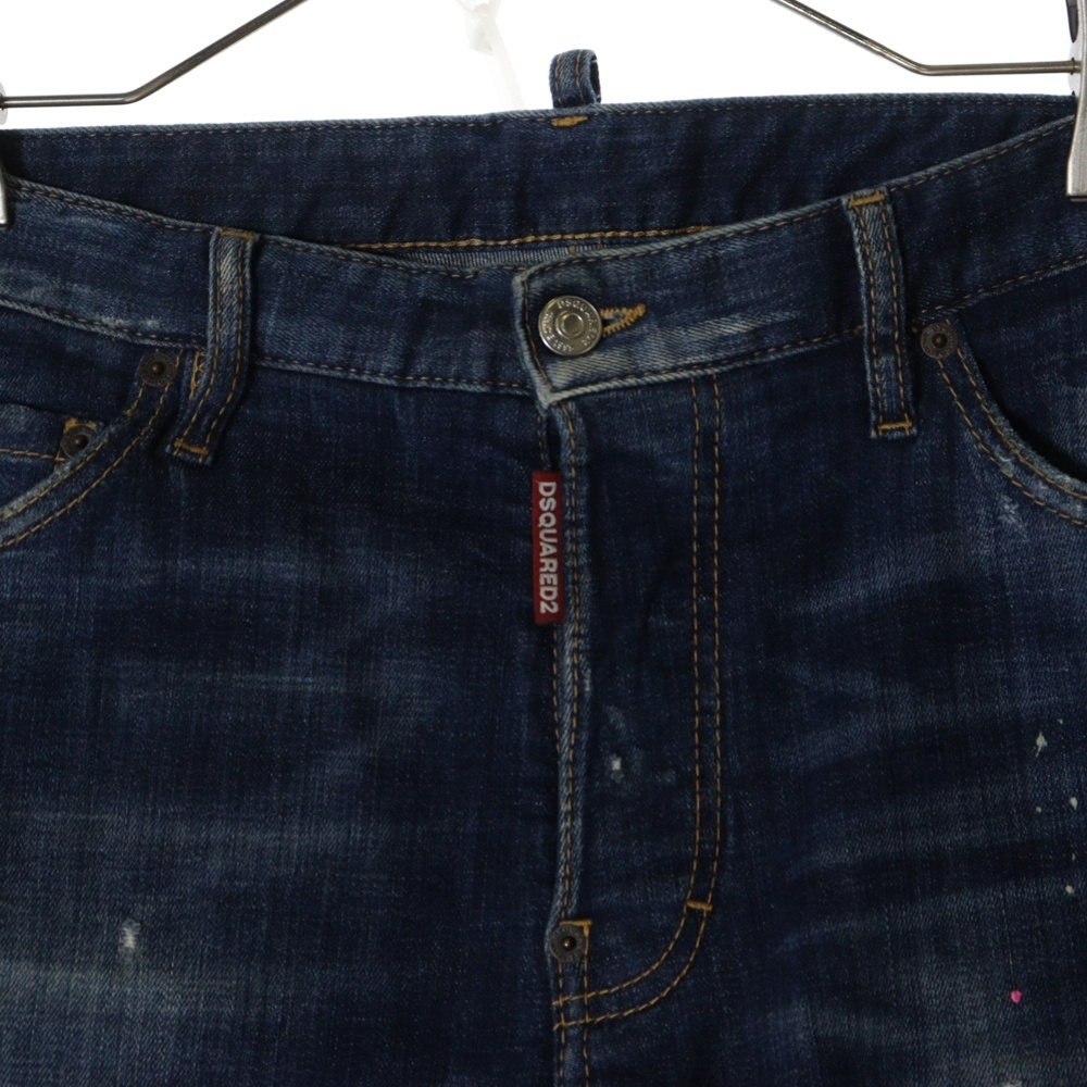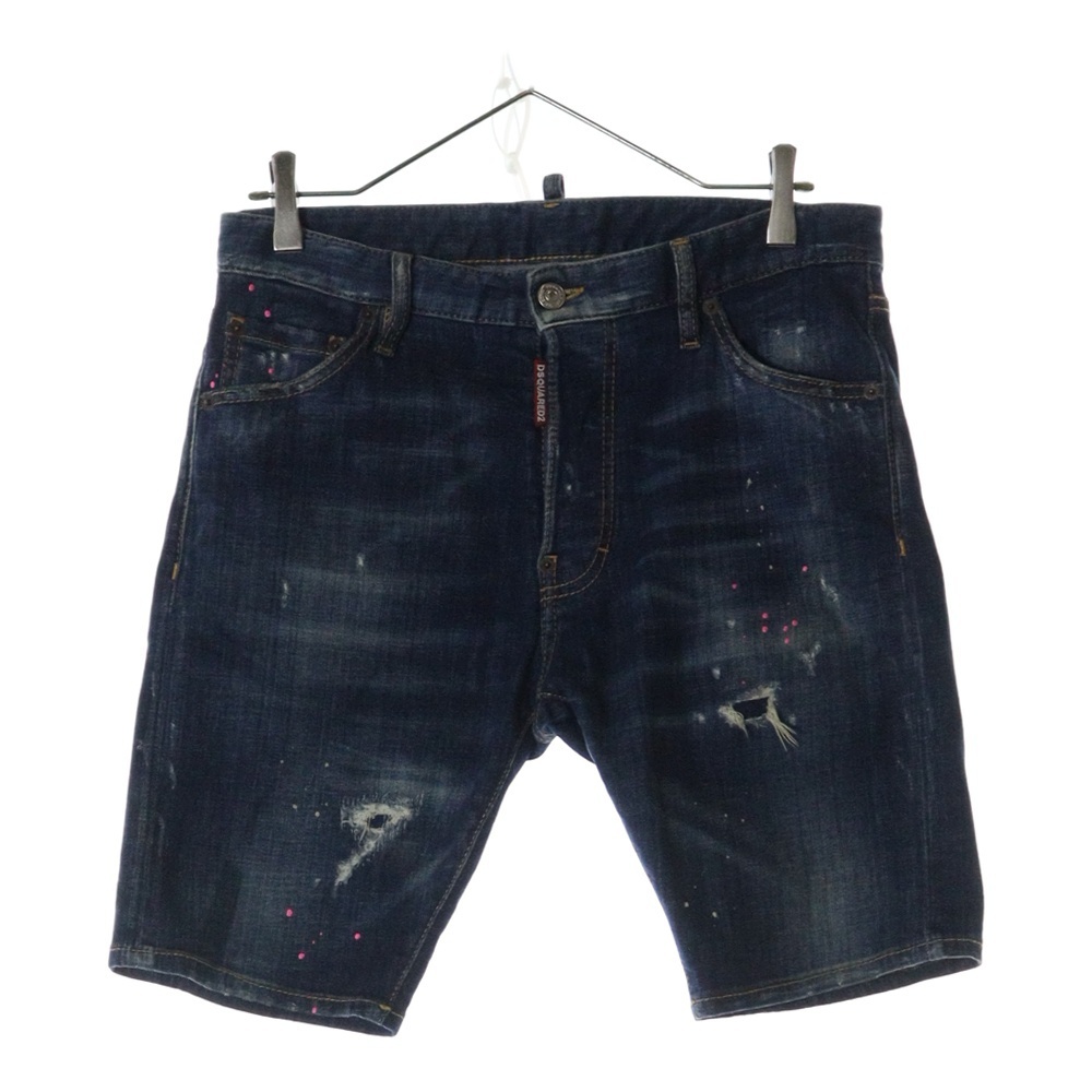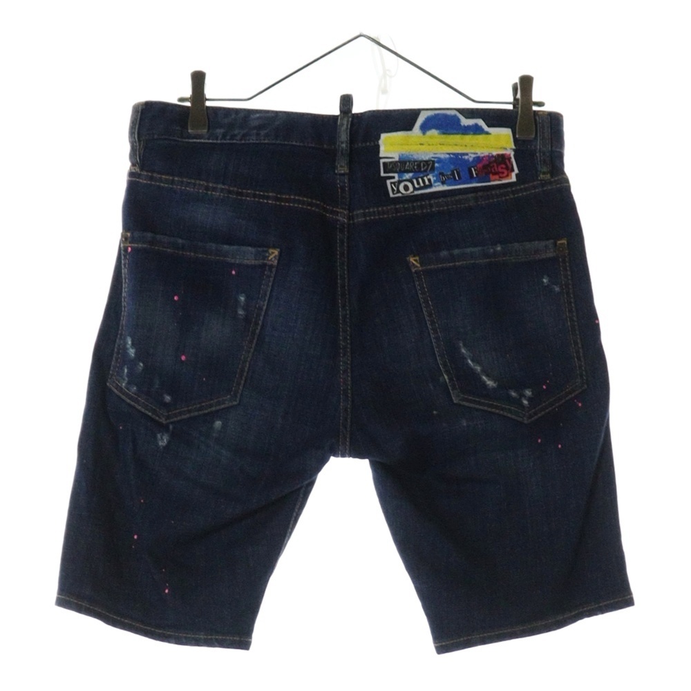 DSQUARED2 ディースクエアード ダメージ加工 ペイントデニムショーツ ハーフパンツ S74MU0540 S30342 インディゴブルー