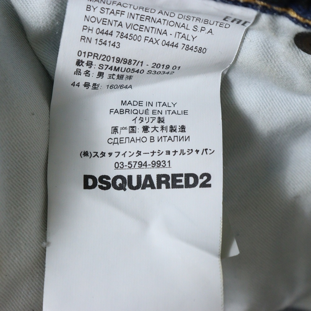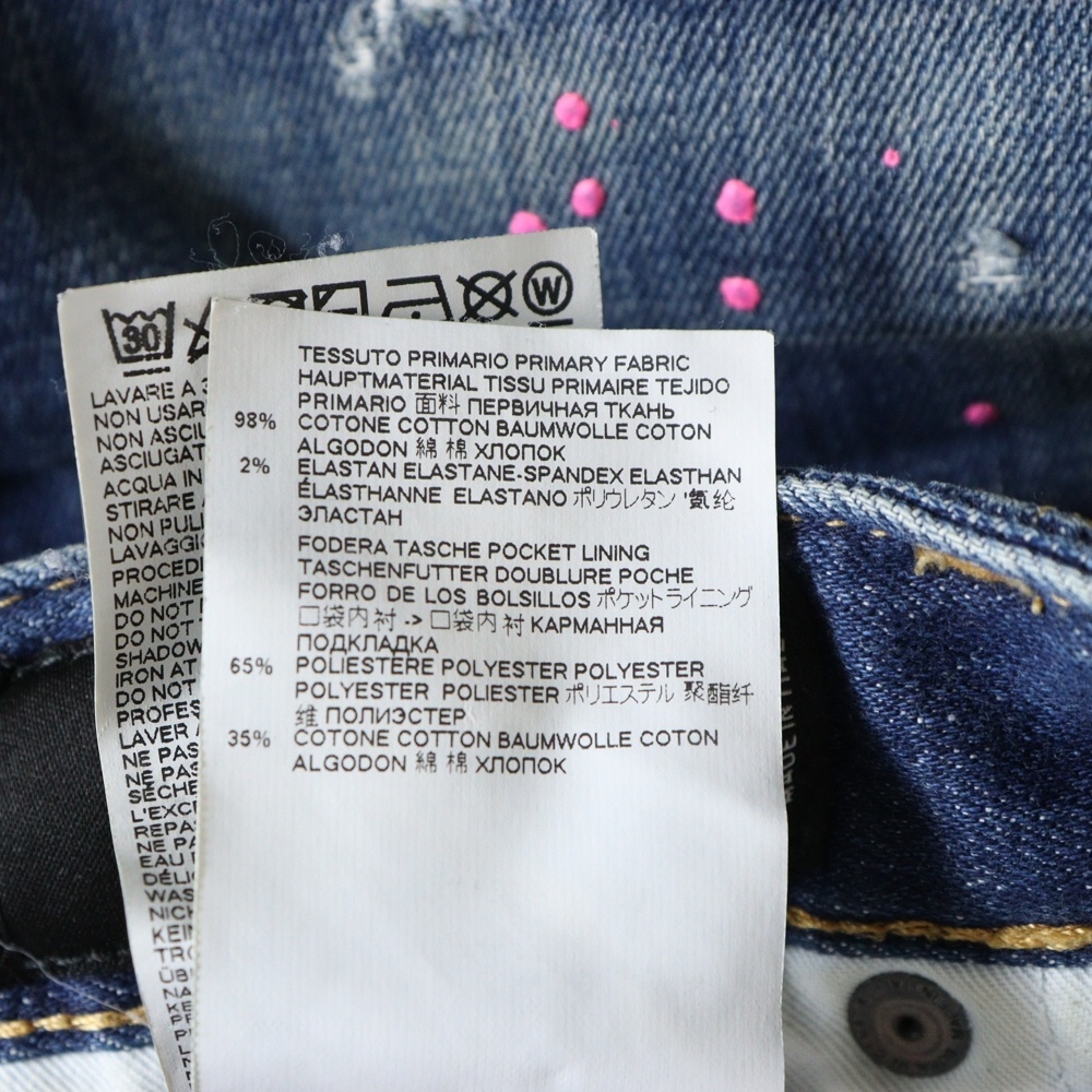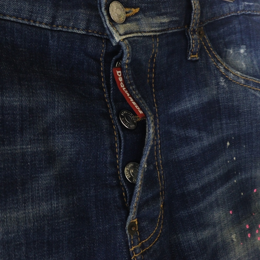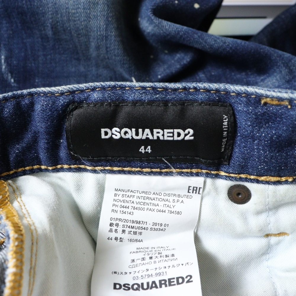 DSQUARED2 ディースクエアード ダメージ加工 ペイントデニムショーツ ハーフパンツ S74MU0540 S30342 インディゴブルー