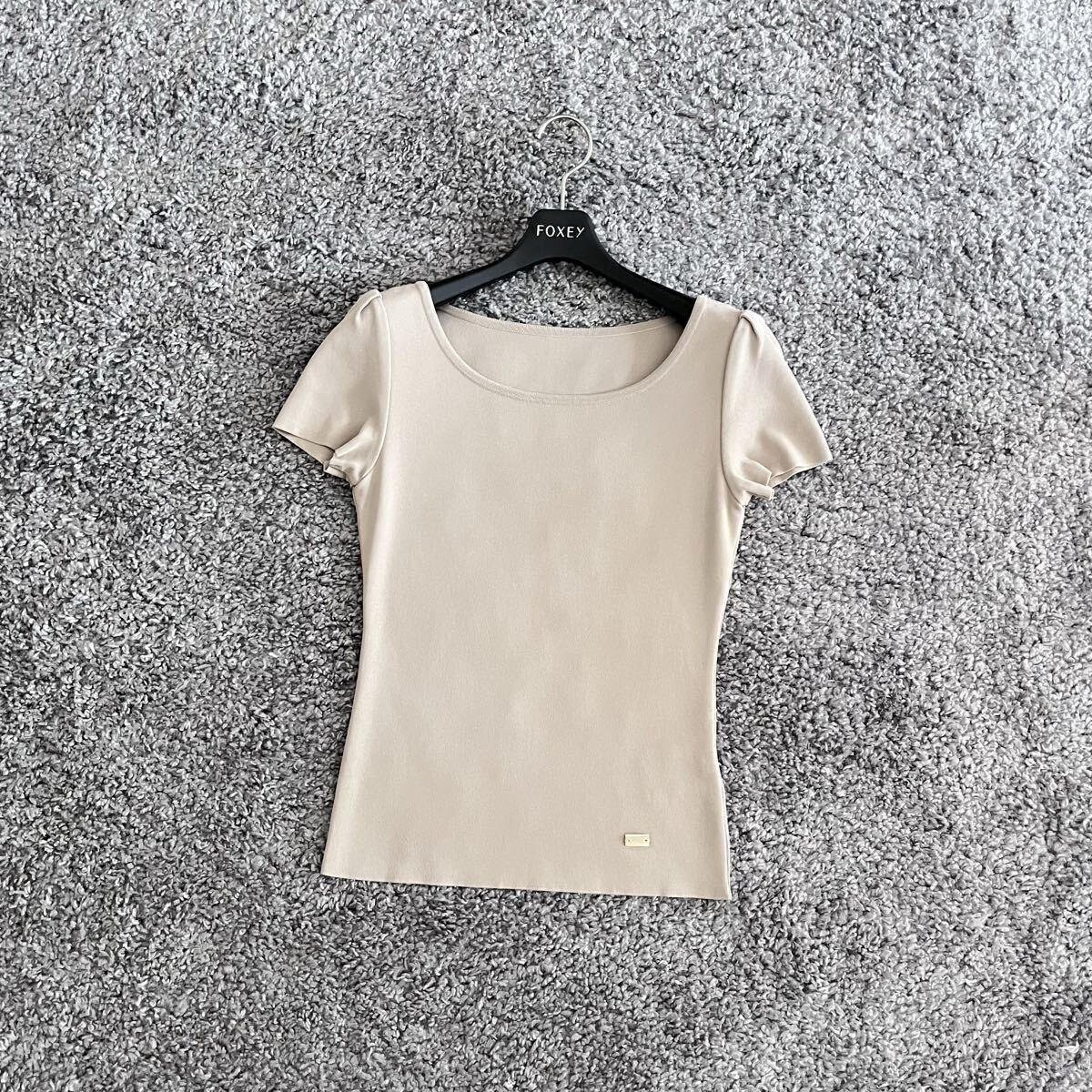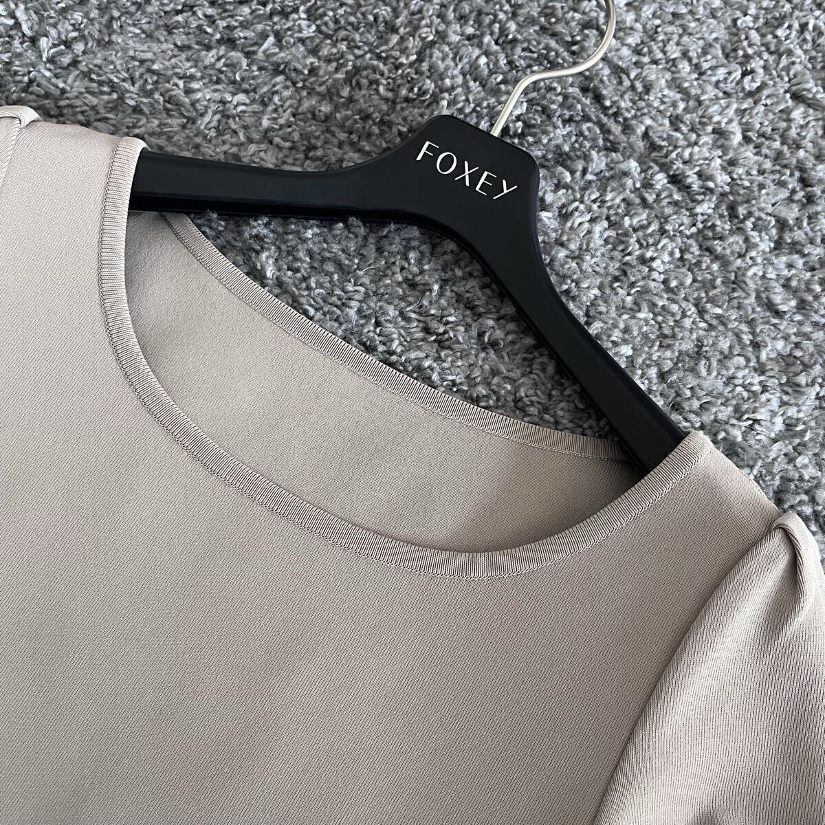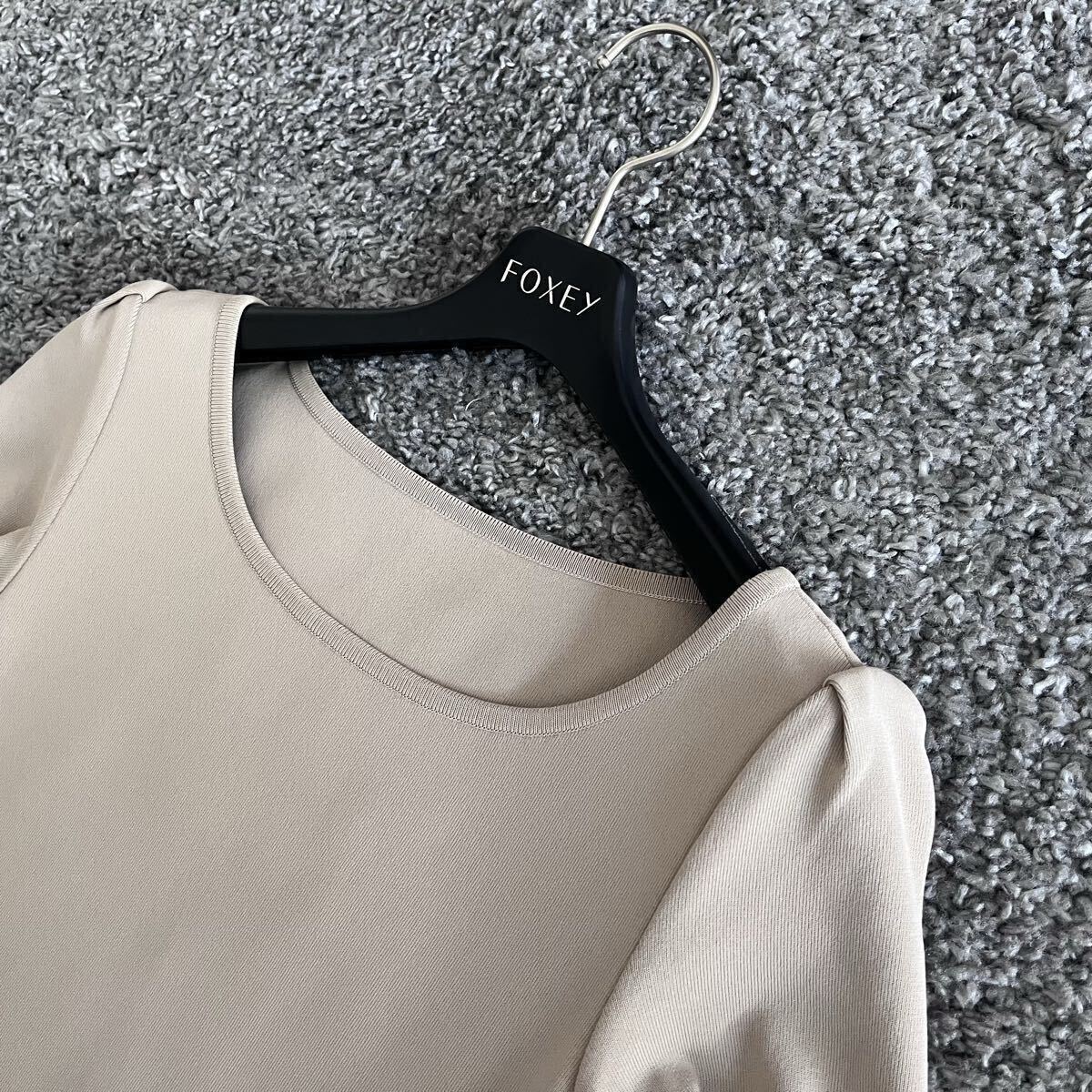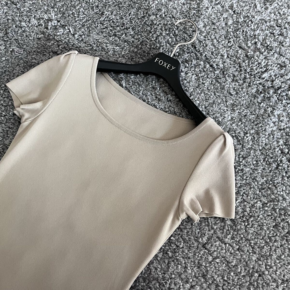 ややくすんだベージュ系ニュアンスカラー。サラッとしたニット素材。