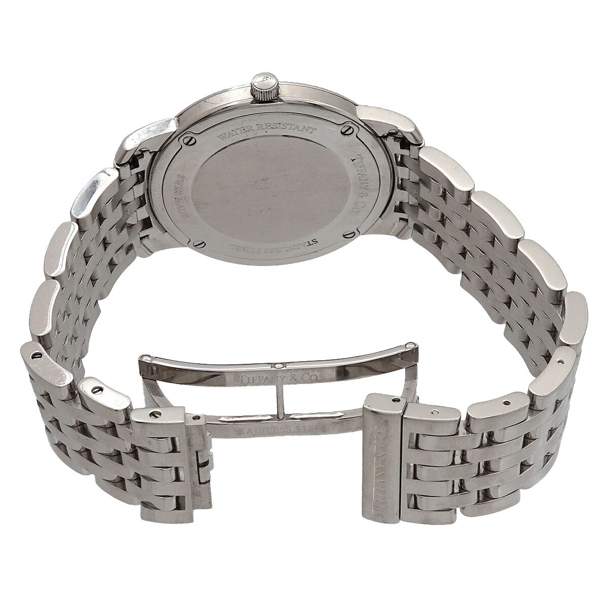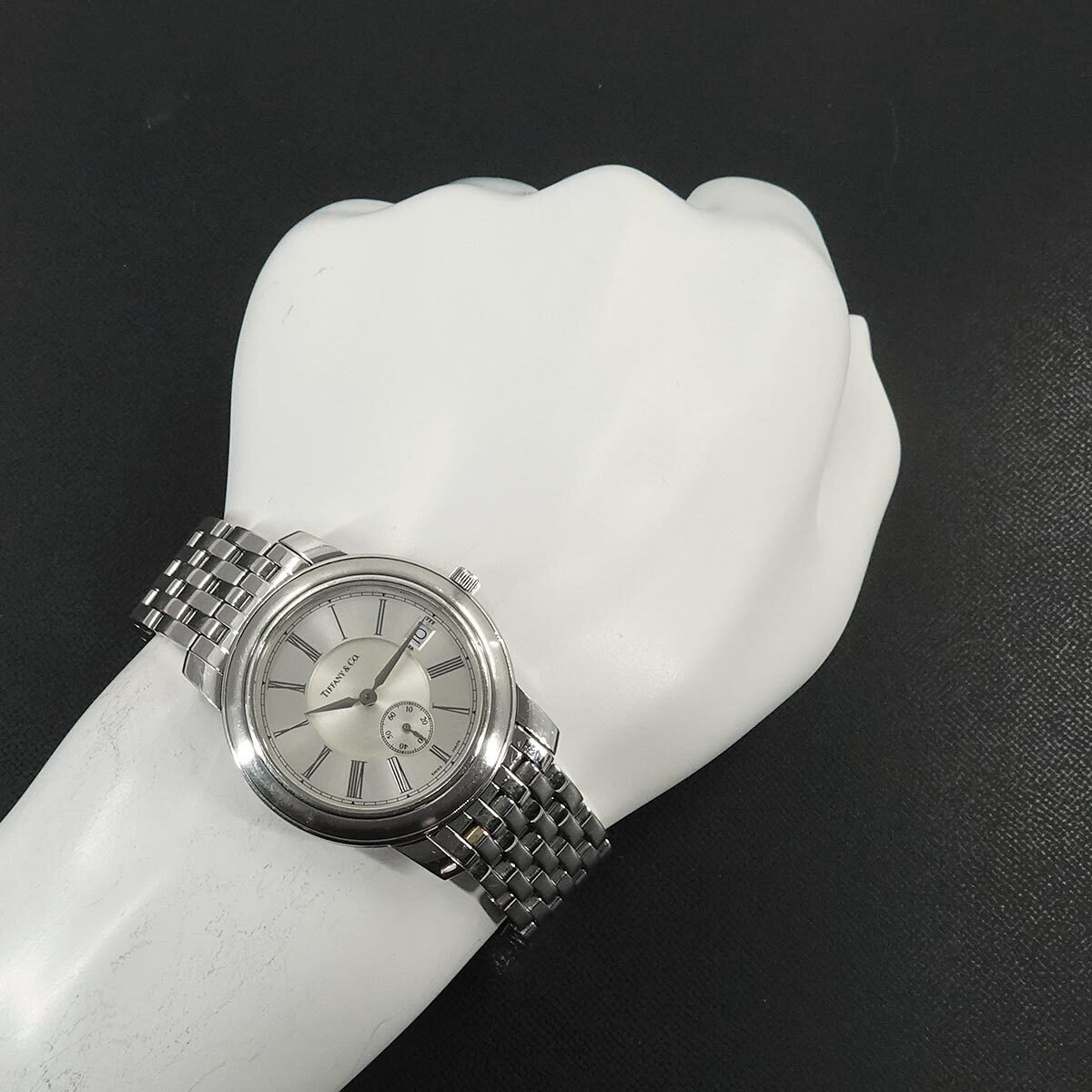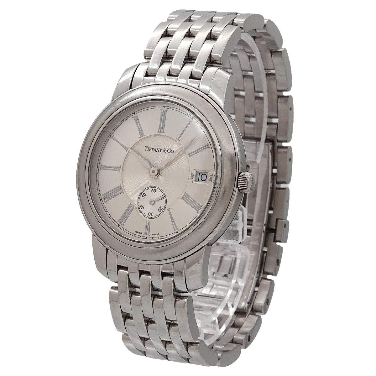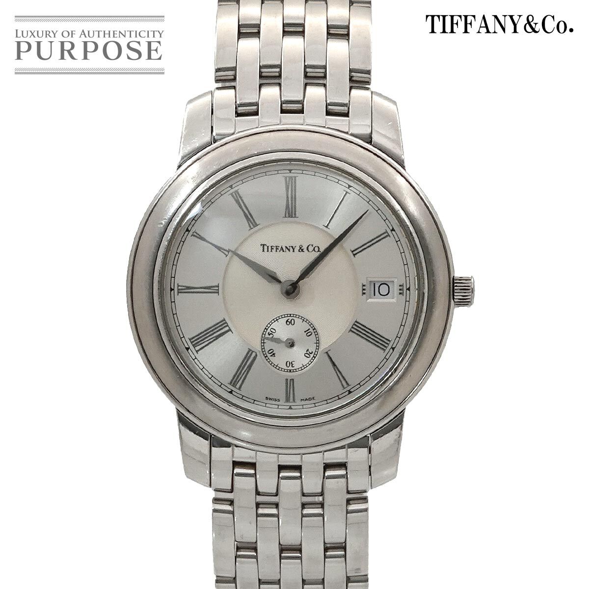 | 商品概要 | ティファニーから懐中時計より着想を得た 『マークラウンド』メンズ腕時計です。美しいシルバー文字盤と洗練されたローマ数字のインデックスがお洒落な、おススメのお品です。 |