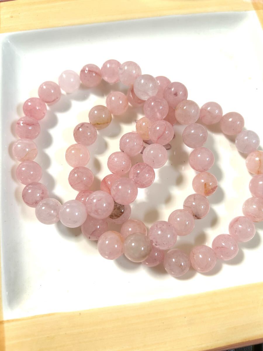 10ミリ丸玉のローズクオーツをブレスレット状につないだものです。