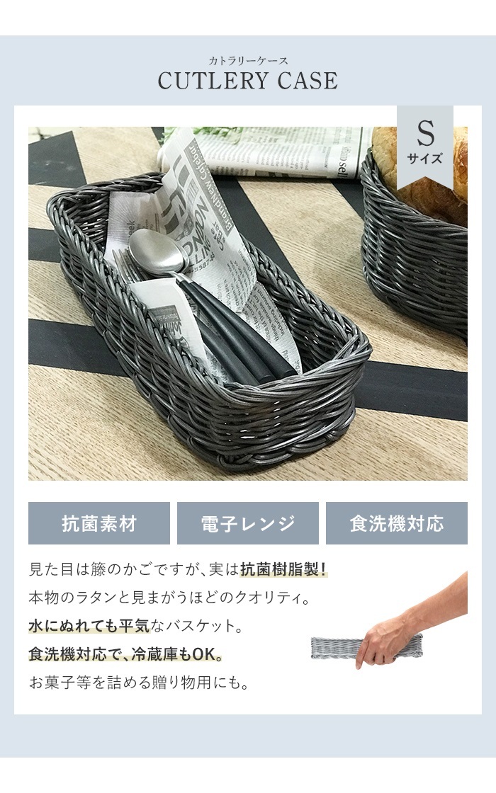 | かご バスケット 洗える 抗菌 樹脂製 ラタン 食洗機対応 電子レンジ対応 丸洗い 清潔 レンジも使える さっと洗える 小物収納 収納 おしゃれ 衛生的 こども 収納 水周り 安心 カフェ サニタリー キッチン リビング バスルーム アウトドア |