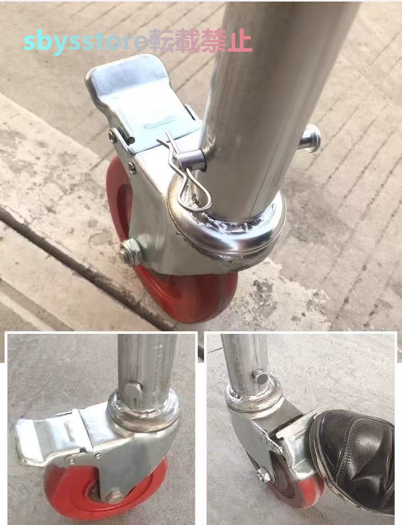 【 キャスター 】新しい 足場 は、360度回転できるキャスターが4つ付いており、キャスターにはブレーキがかかり、安定性が良く、移動や固定も簡単です. 作業台 の移動や固定が簡単.