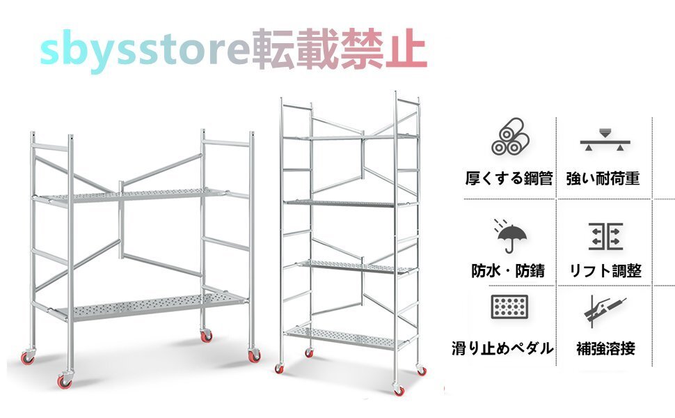 【 高品質な素材 】当社の 折りたたみ足場 は制品は亜鉛メッキから作られており、耐久性のある溶接プロセスは、全体のラウンド溶接は、サポートを強化し、強い荷重、その最大積載量は500キロに達するので、安全性の問題を心配することなく、複数の人々が同時に作業することができます. 新 足場 は滑り止めペダルを使用しており、より安全に使用できます.