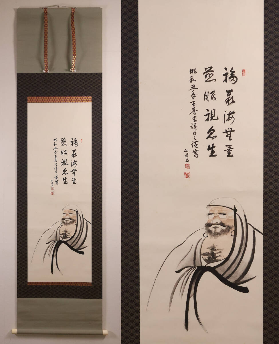 ◇日本画 達磨画賛 仙芳銘 紙本 掛け軸 達磨大師 MA837◇