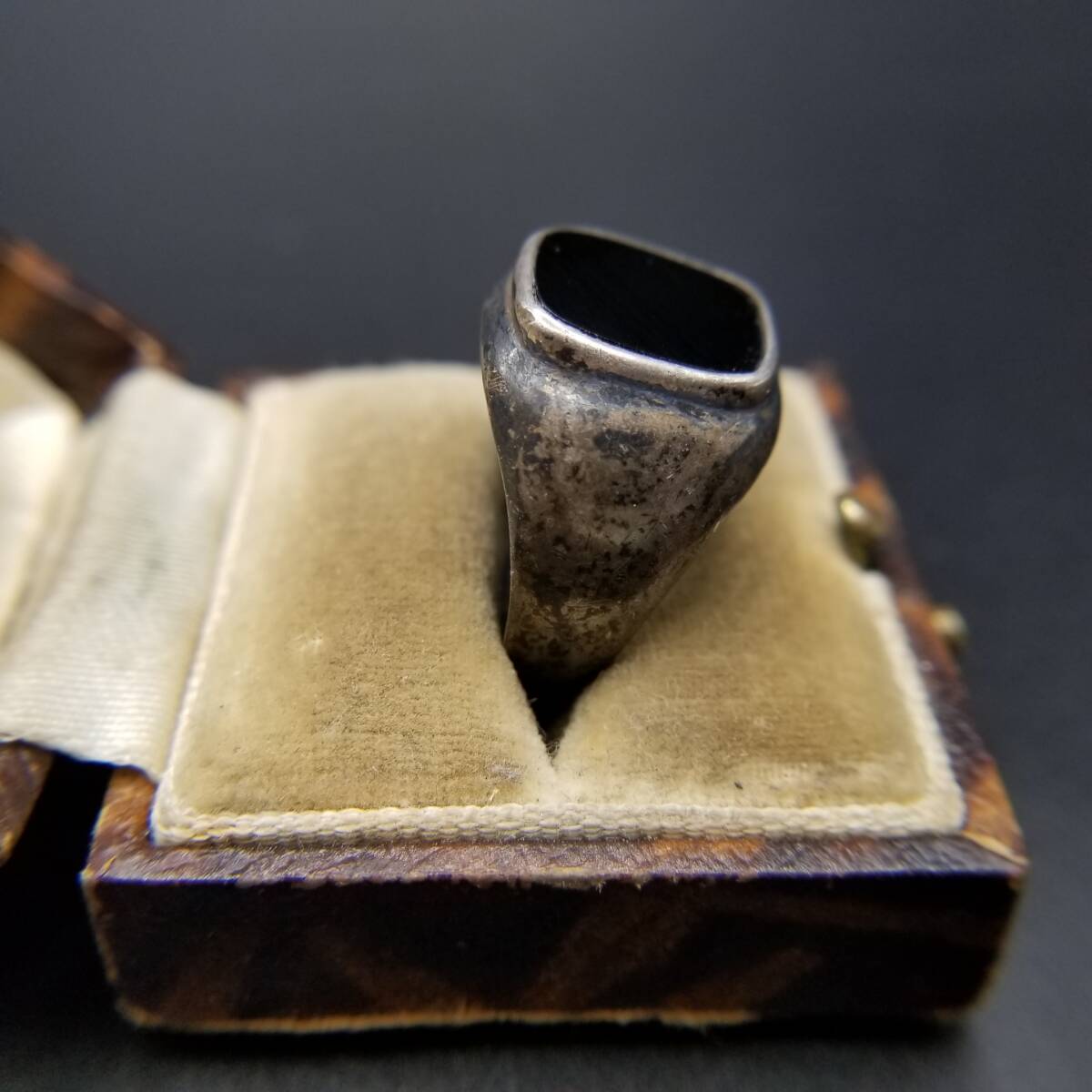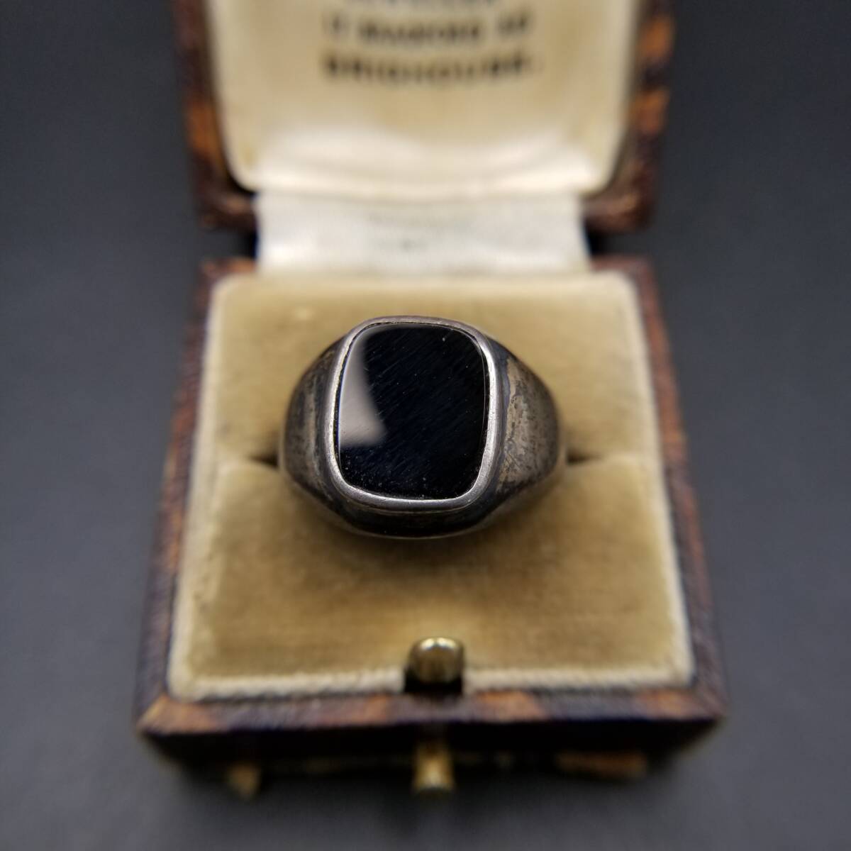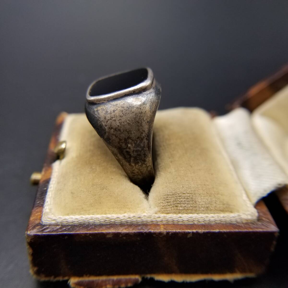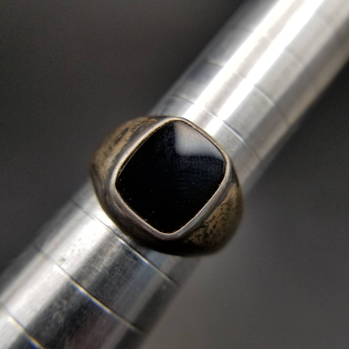 オニキス インレイ レクタングル 925 シルバー ヴィンテージ シグネット リング 銀 指輪 クラシカル ミニマム ユニセックス Y24-L