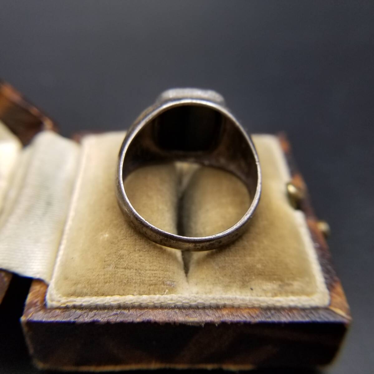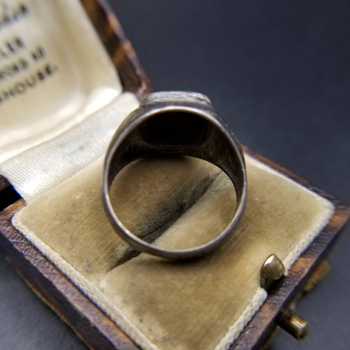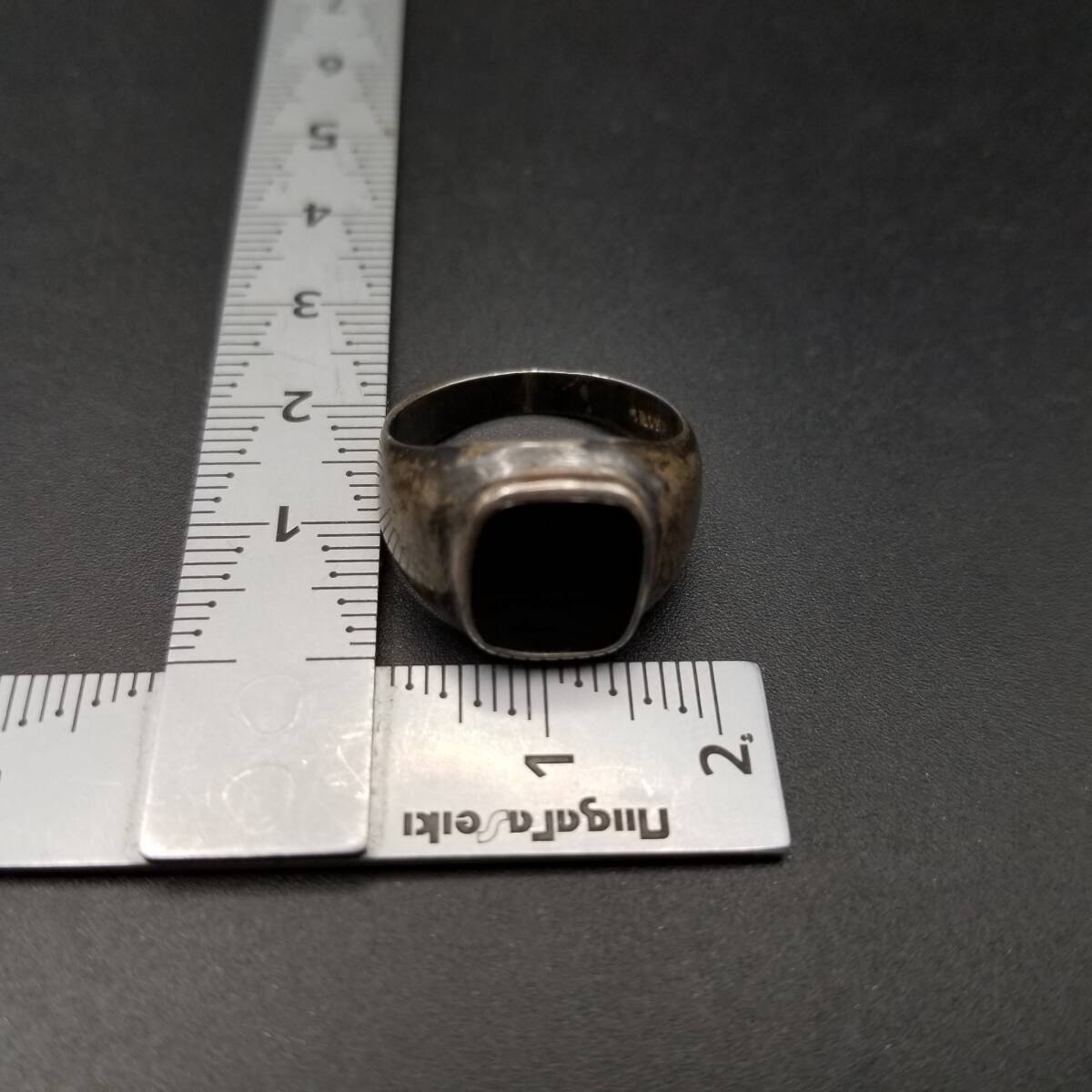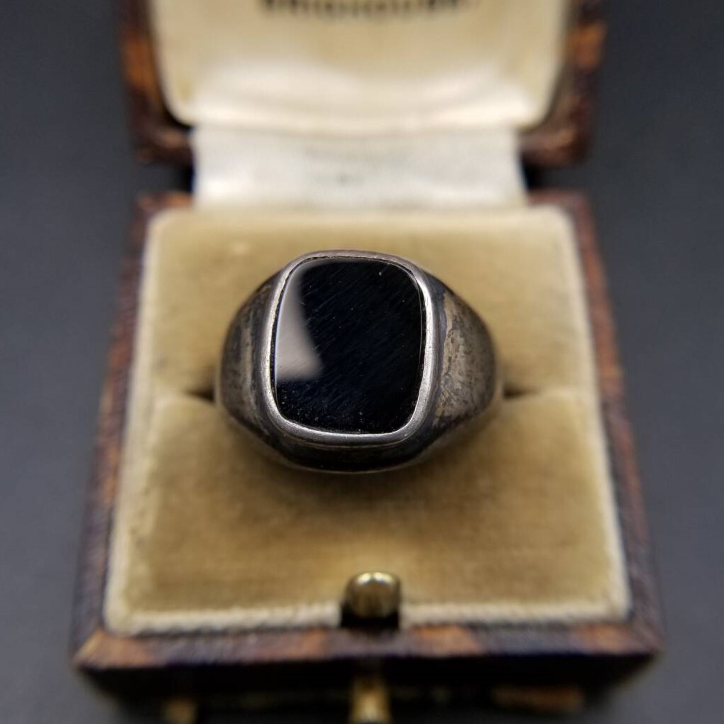 オニキス インレイ レクタングル 925 シルバー ヴィンテージ シグネット リング 銀 指輪 クラシカル ミニマム ユニセックス Y24-L
