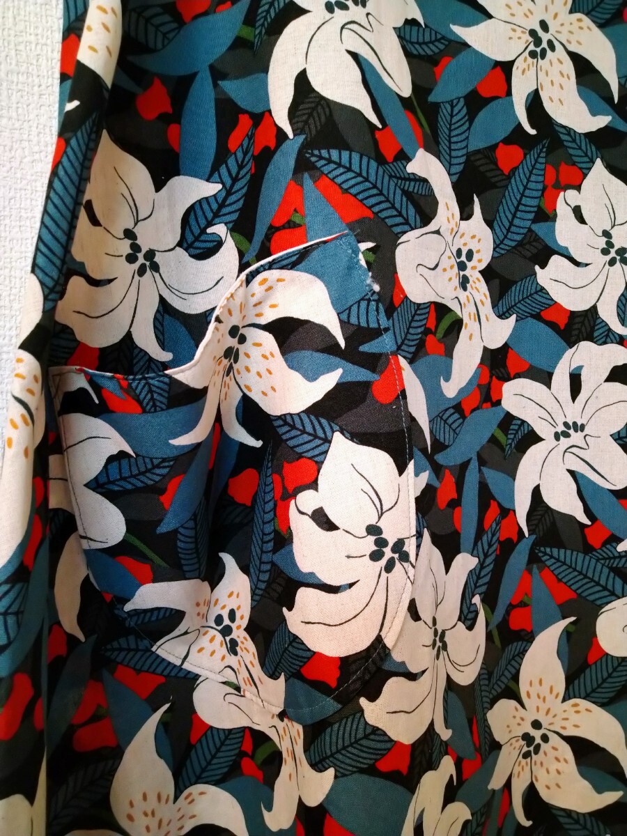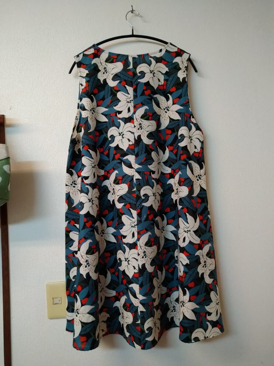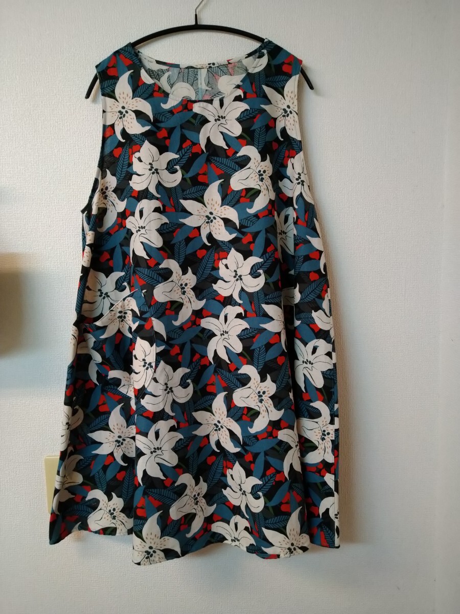 綿麻のアフリカンプリントで、Aラインのエプロンドレスを作りました。