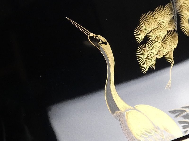 輪島 慶塚 作「松に鶴沈金 五段重」共箱