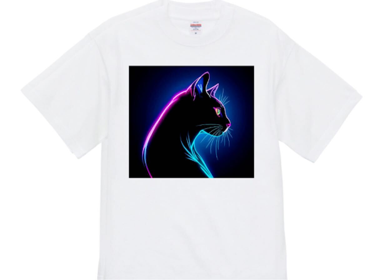 暗闇に浮かび上がるネオンカラーのネコ