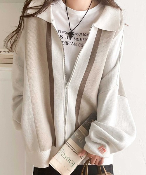 参考商品名:《Java ジャバコラボ》大人レトロな一枚。ヴィンテージ風ニットブルゾン