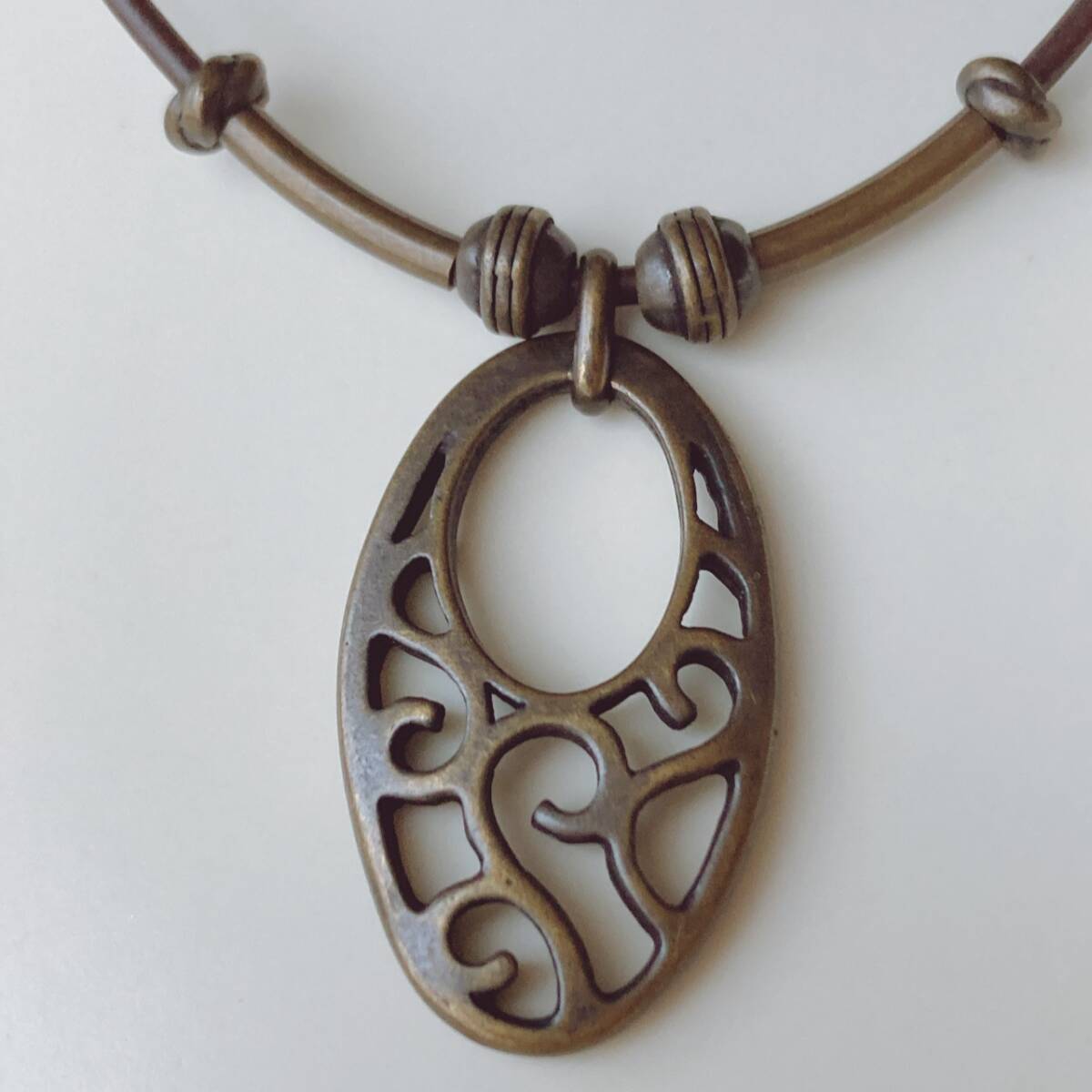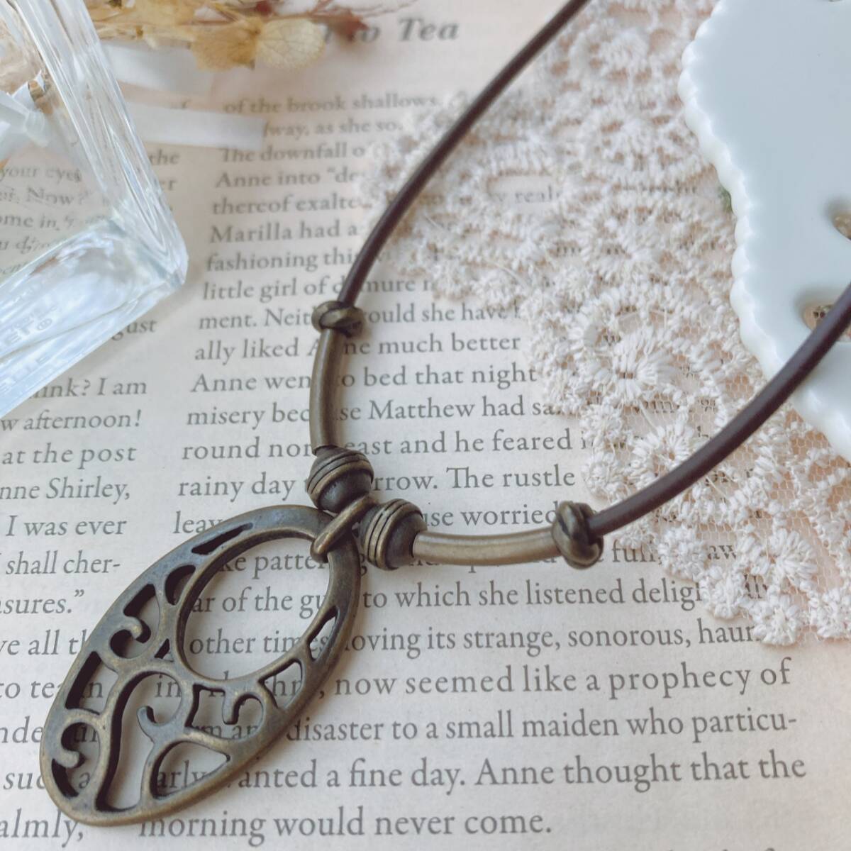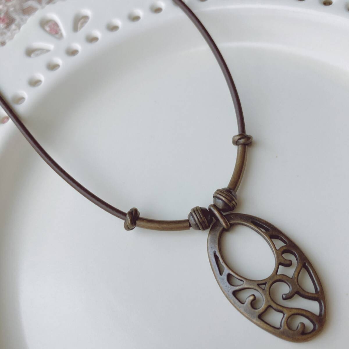 LUPUY リュピュイ レザーネックレス こげ茶 ブラウン系 アンティークゴールド 美品☆vintage jewelry accessories F0032
