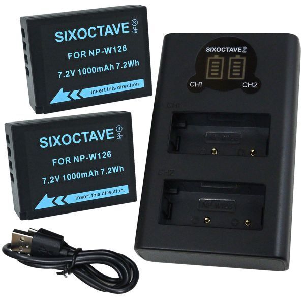 送料無料 NP-W126 富士フィルム 互換バッテリー 2個と 互換充電器 1個(2個同時充電可能 / USB充電式)X-T10 / X-T20 / X-T30
