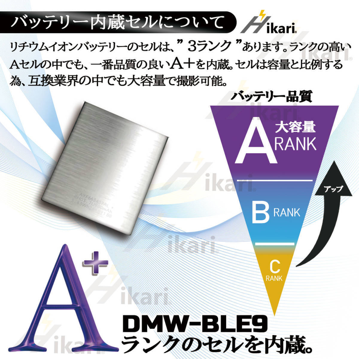 大容量 最新ICチップ搭載 パナソニック DMW-BLE9 / EMW-BLG10 互換バッテリー2個と互換充電器 DMC-S6 DMC-GX7 DMC-LX100 DMC-TX1 DMC-TZ100
