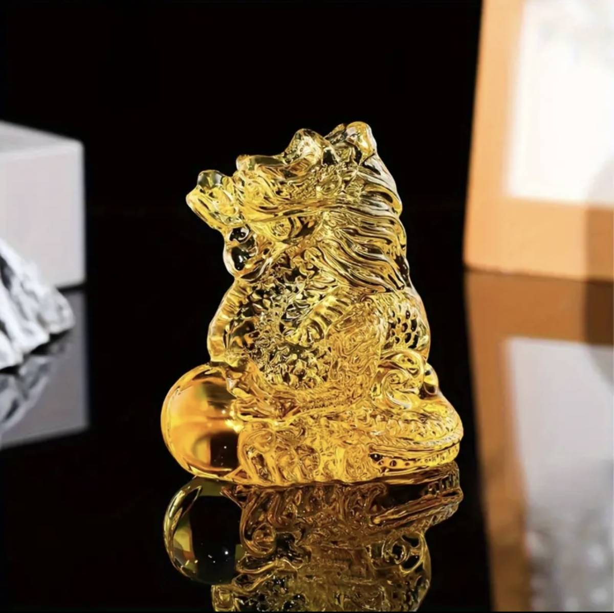 開運干支 クリスタルガラス製 吉祥龍 琥珀色 ドラゴン 辰 タツ 竜 招福 縁起物 風水 置物 インテリア小物 可愛い
