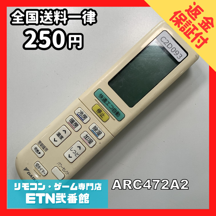 C2D093 【送料250円】エアコン リモコン / Daikin ダイキン ARC472A2 冷房 暖房 動作確認済み★即発送★