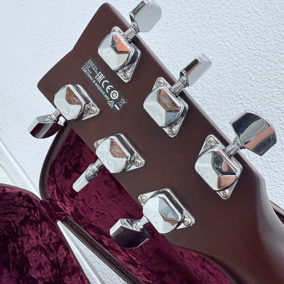 コンパクトで扱いやすいコンサートサイズにカッタウェイを採用し、初心者から中級者まで幅広くおすすめできるモデルです。内蔵ピックアップ&チューナー付きで、アンプに繋いでの演奏やライブでも活躍します。