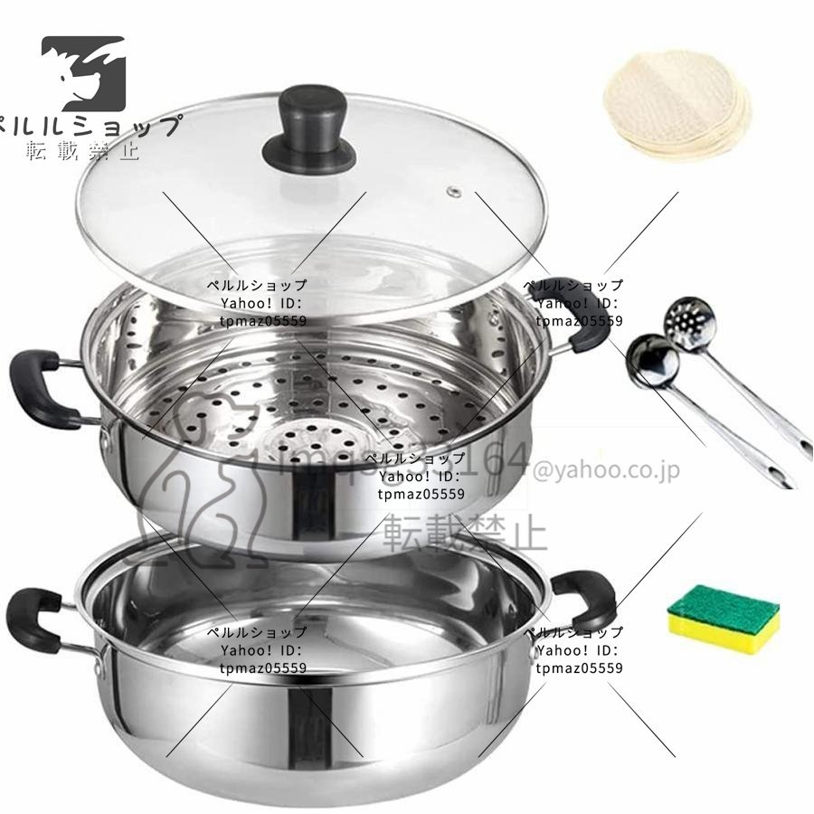 蒸し器 二段 蒸し鍋 対応熱源 複数サイズ ガラス鍋蓋付 らし深型満菜キッチン用品調理器具ステンレス製多機能 対応 肉まん 蒸し器 28CM