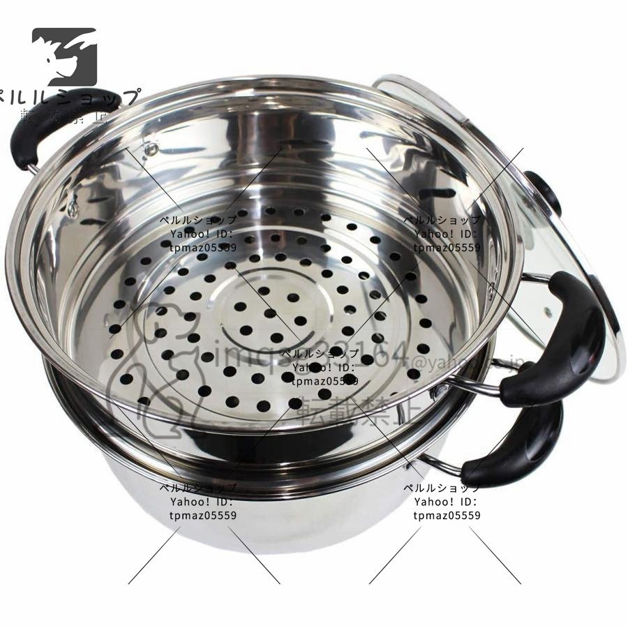 蒸し器 二段 蒸し鍋 対応熱源 複数サイズ ガラス鍋蓋付 らし深型満菜キッチン用品調理器具ステンレス製多機能 対応 肉まん 蒸し器  28CM