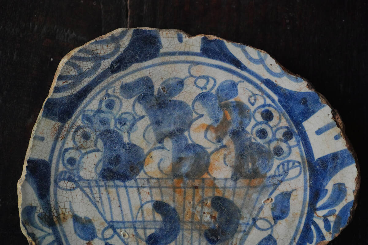 17世紀オランダのマジョリカ藍絵石榴文皿陶片です。