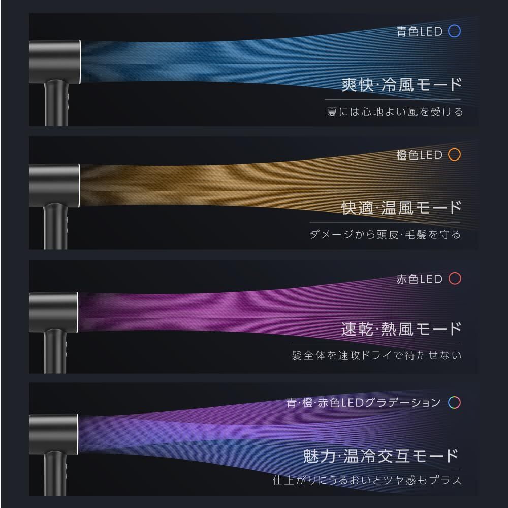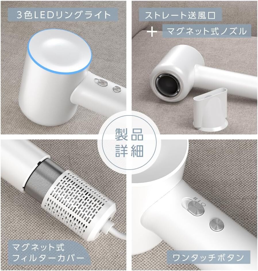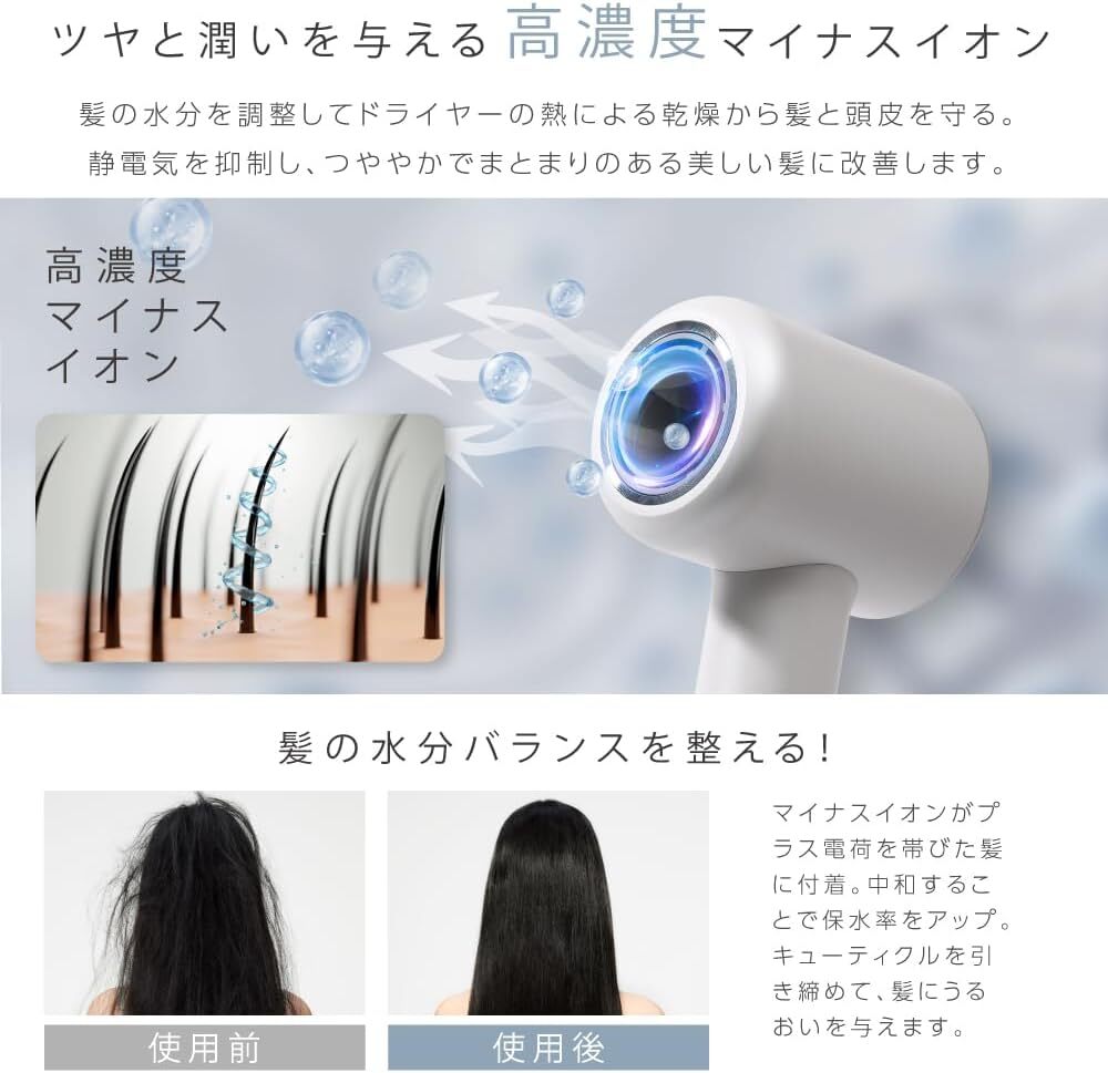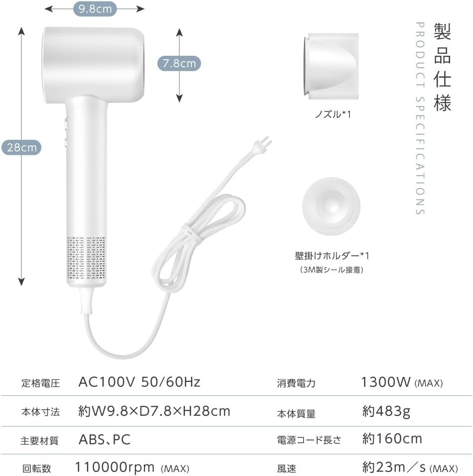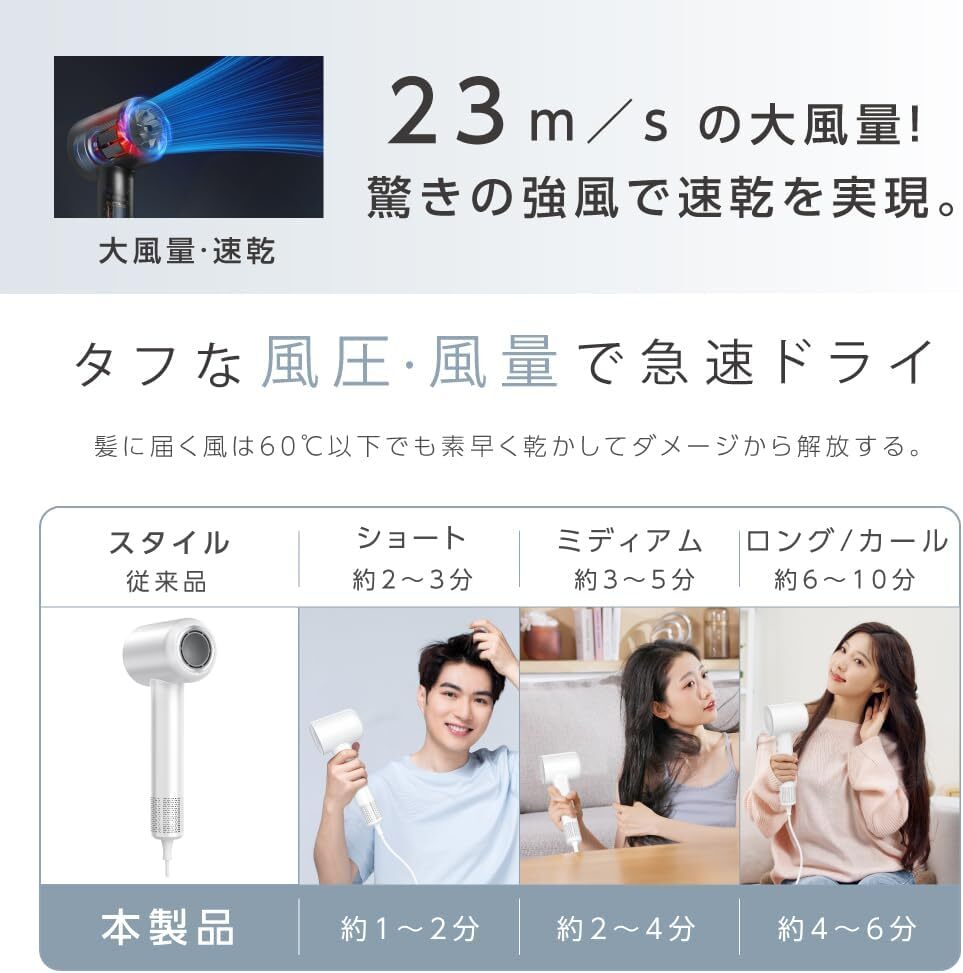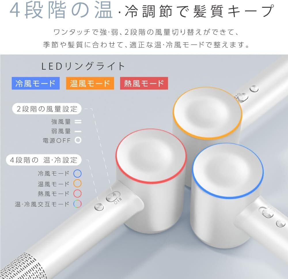 大風量 速乾 ドライヤー マイナスイオン 大風量 1300W 軽量 短時間 冷風 温度調節 4モード 静電気除去 高速ドライヤー xr-h001-wh