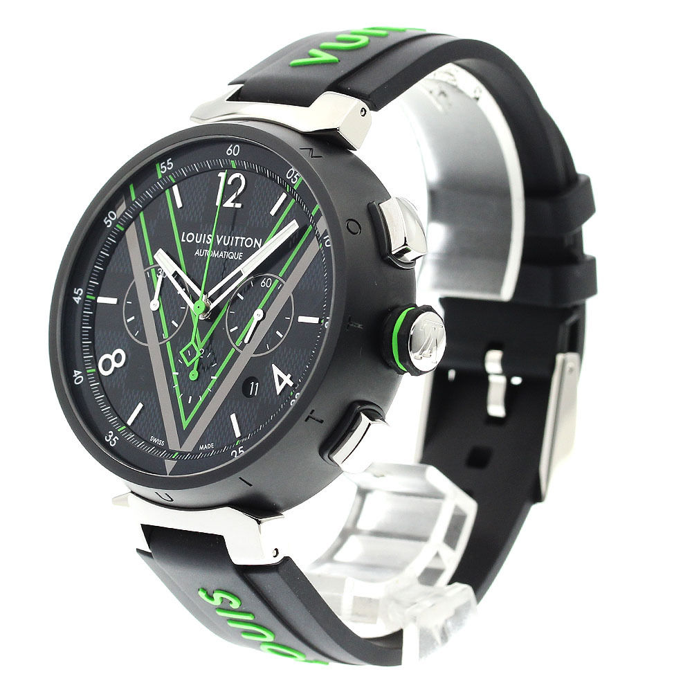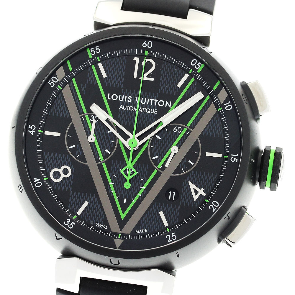 ルイ・ヴィトン LOUIS VUITTON QA130Z タンブール ダミエ・グラフィット レース クロノグラフ 自動巻き メンズ 美品 箱・保証書付き_907006