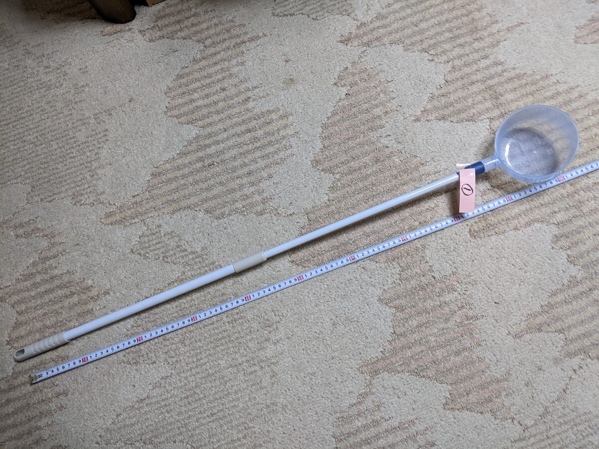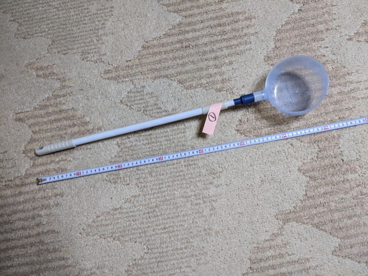ご覧頂きありがとうございます。説明を最後までお読み頂きますよう!伸縮用に改造柄杓(先端磁石付き)の出品です。大きさ・長さ等は、画像をご覧頂き宜しくお願いします。少し高台や水位が下がった時の水汲みに便利かも!!如何ですか!! 金属(鉄系・ステンレス系)物などを落とした時用に先端に磁石を取り付けました。これもまた少し便利かも!!※サイズ:長さ:短(70cm)/最長(約105cm)発送:定形外郵便(規格外:450円)※シャフトの伸縮方法は、細い方と太い方を握り、太い方を左に回すと緩みます。長さを伸縮調整し太い方を右側に回すとロック状態になり完了。※管理池やダムなどの桟橋からの水汲みに便利ですよ!!