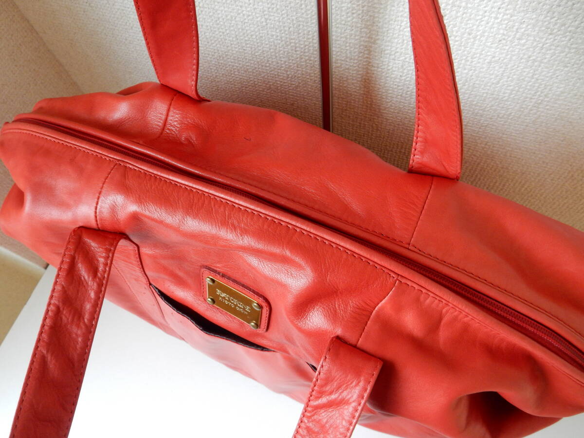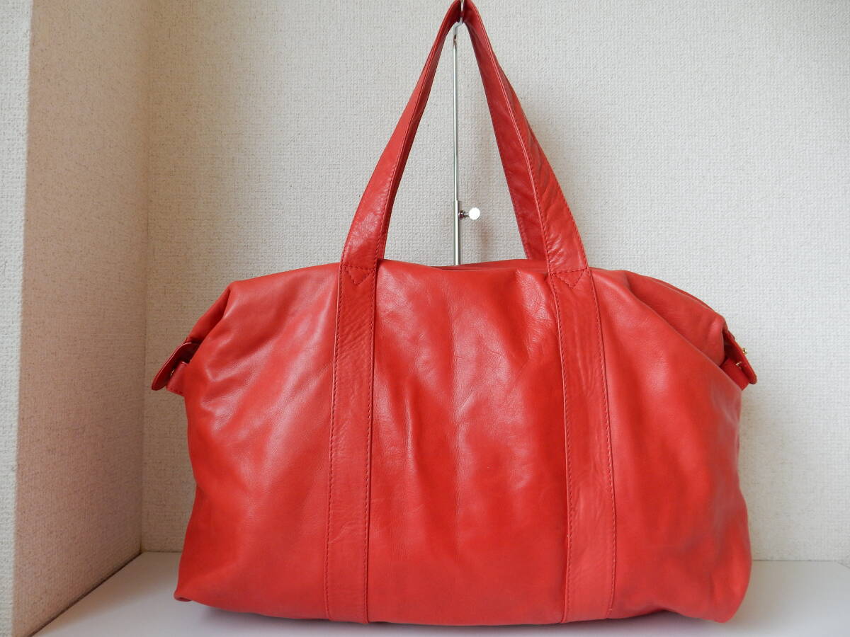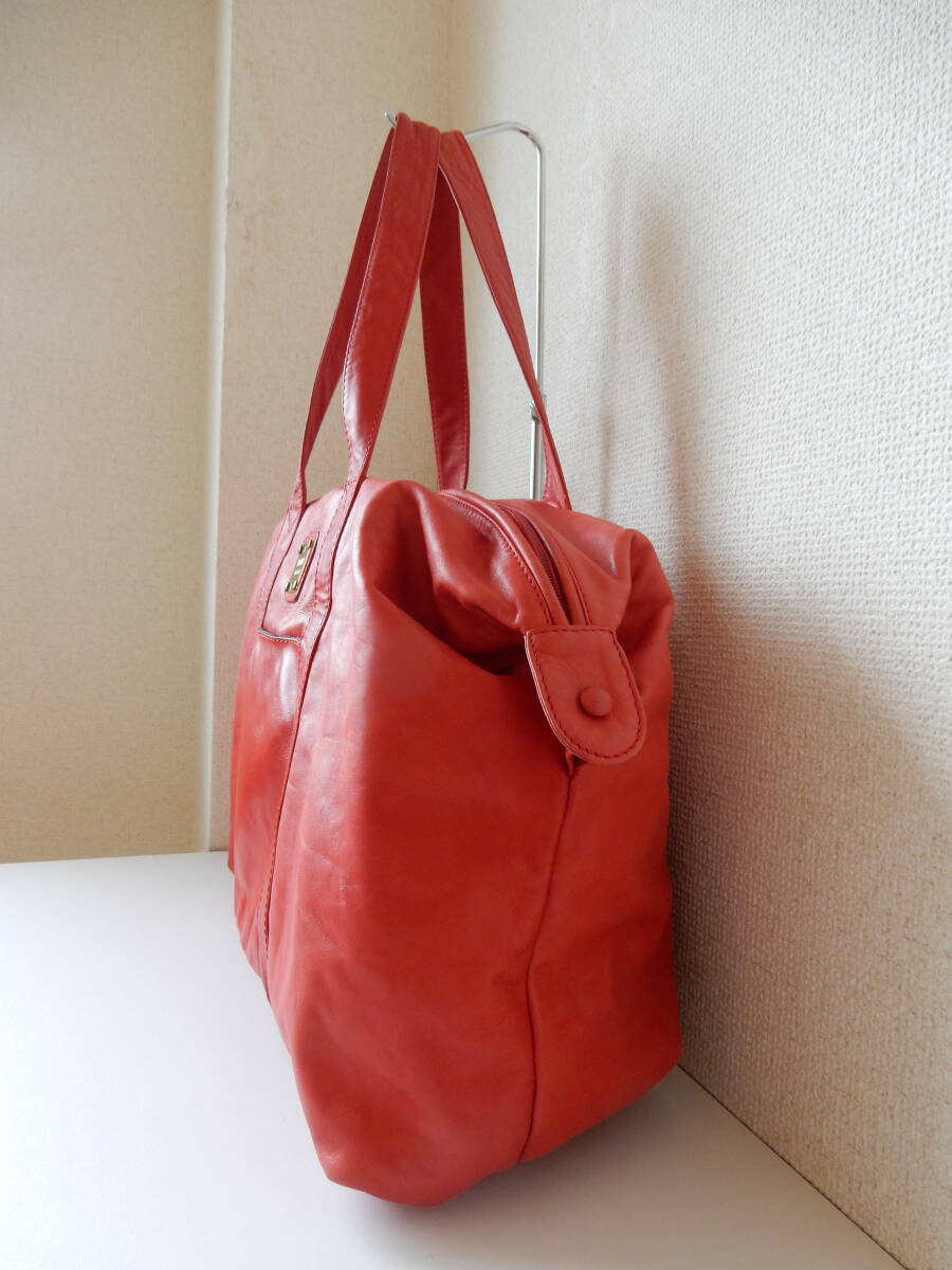 イタリア製☆本革☆Tatiana pelletterie(タチアナペレッテリー)☆大判B4対応☆大型トートバッグ レッド(金具ゴールド)