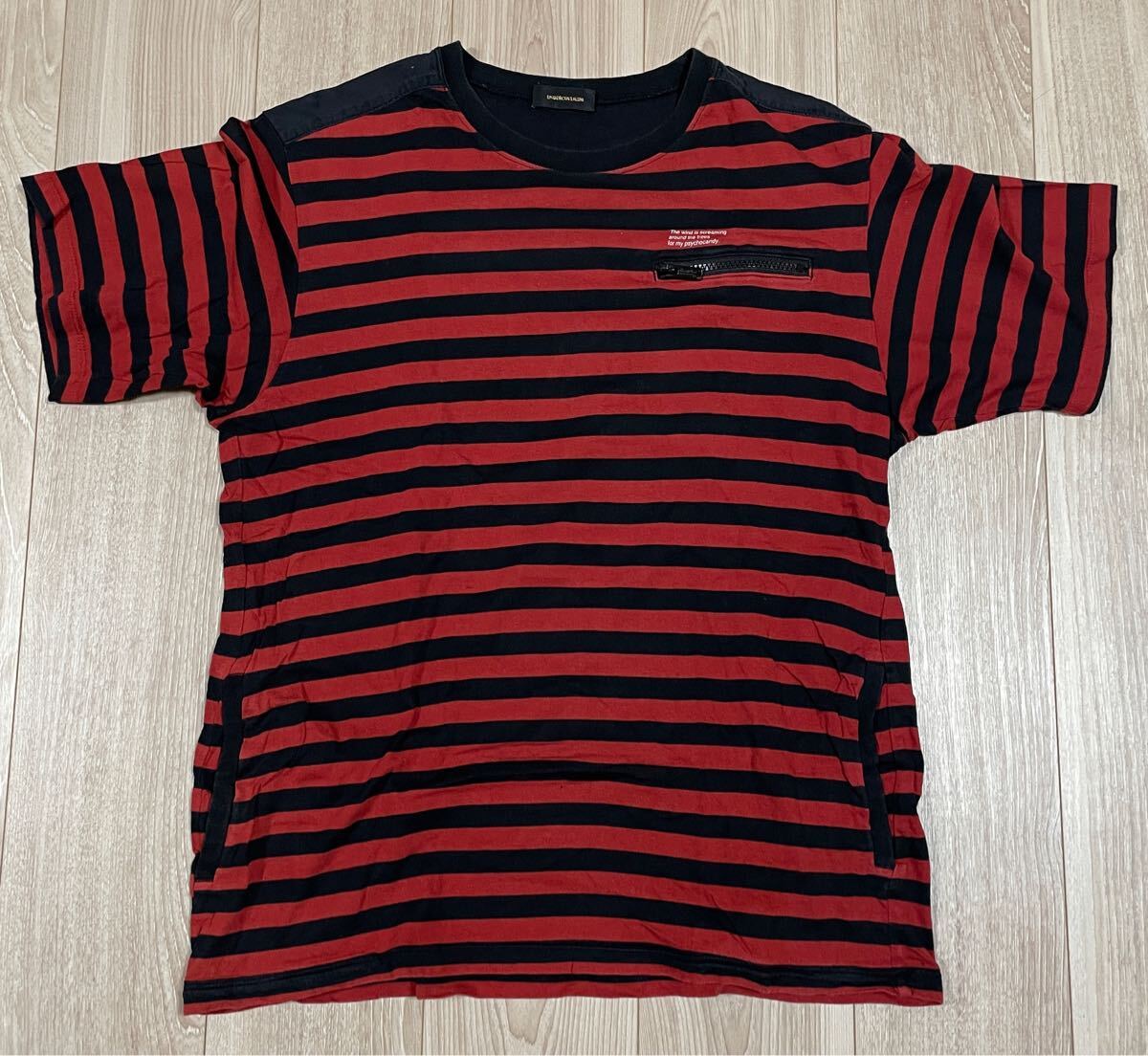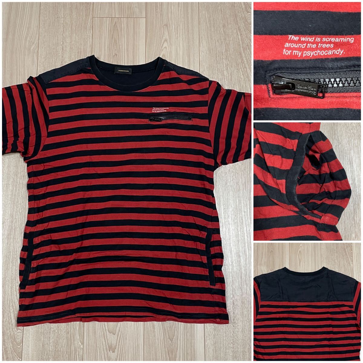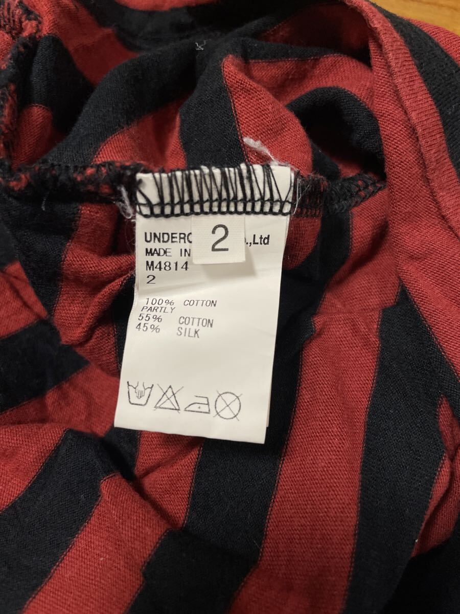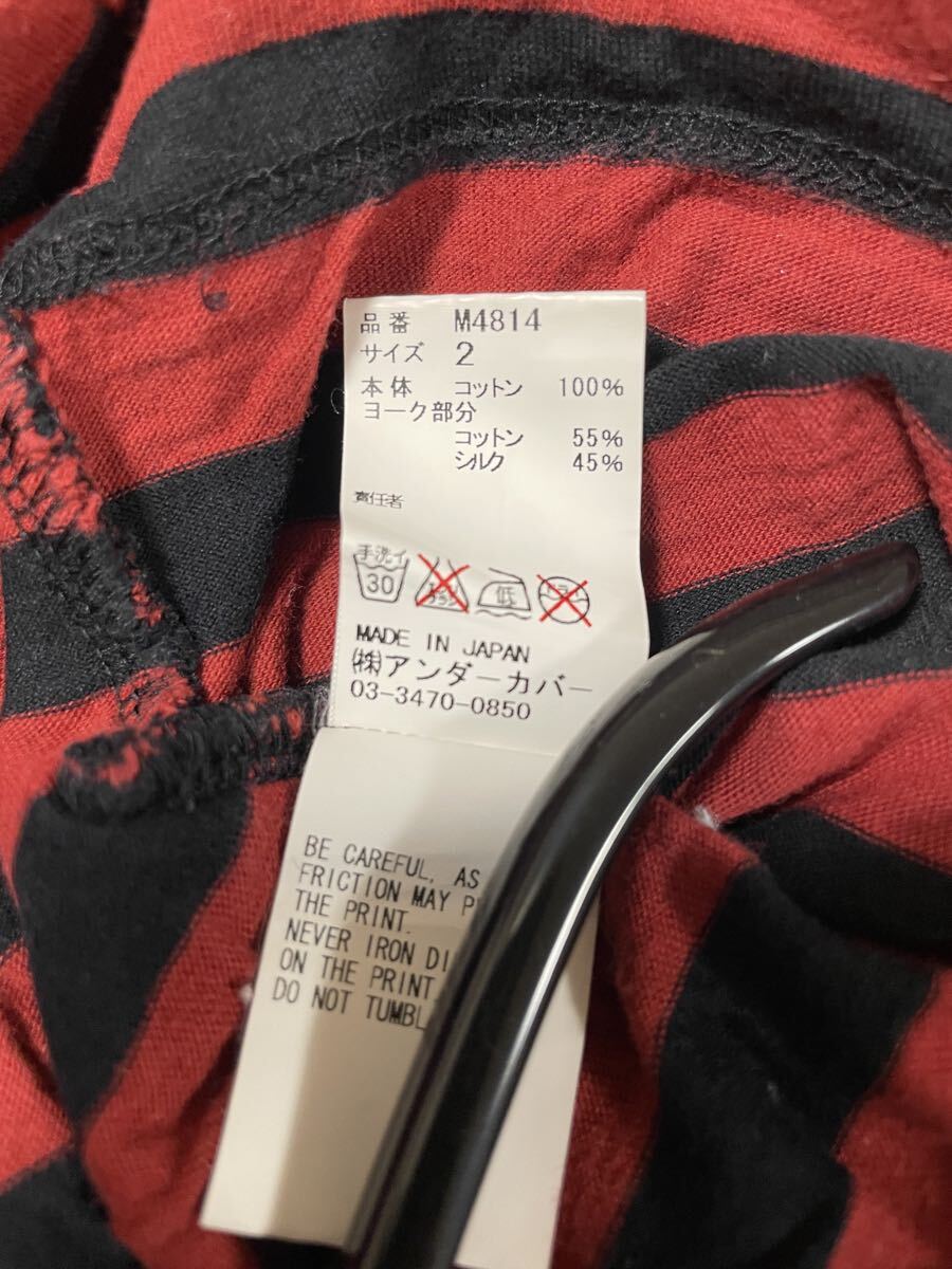 JONIO着 14ss UNDERCOVER アンダーカバー ジザメリ ヨークサテン切替ボーダー 半袖 Tシャツ カットソー サイドポケット付