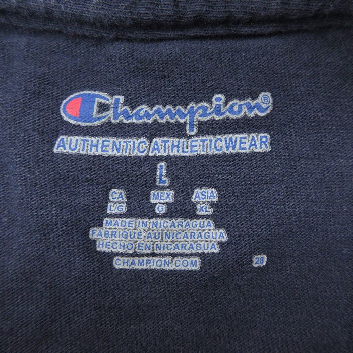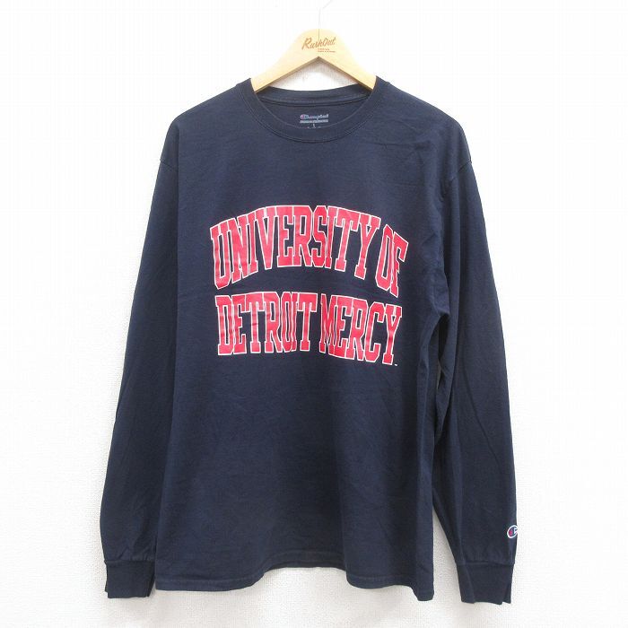 【商品名】 L★古着 チャンピオン Champion 長袖 Tシャツ メンズ デトロイト コットン クルーネック 紺
