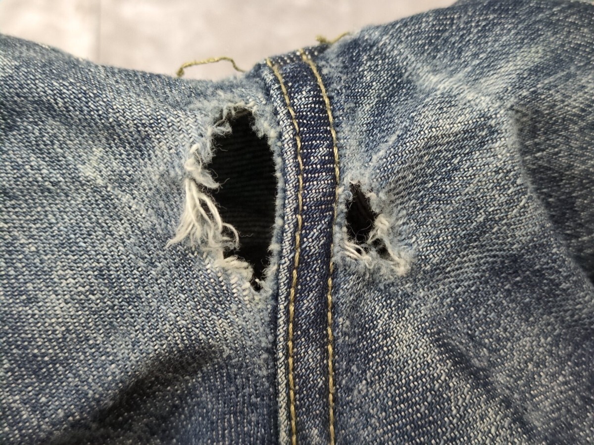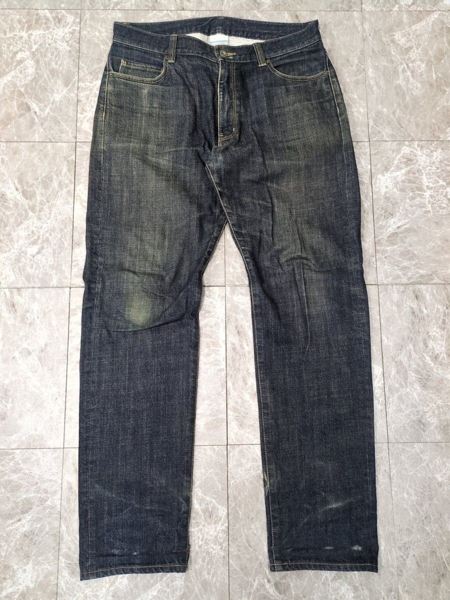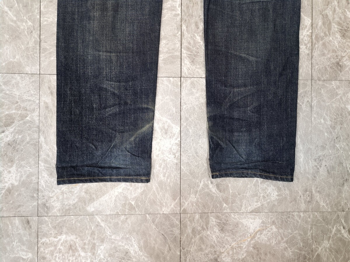正規品です。 【肩幅】 【着丈】 【身幅】 【袖丈】 【ウエスト】86 【総丈】114 【股下】80 【裾幅】19 ジップやボタンに緑青化 裏地に汚れ 膝や股下に穴 使用感があります 膝裏や裾に擦れキズ |