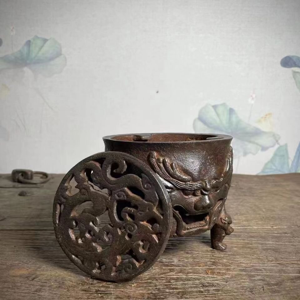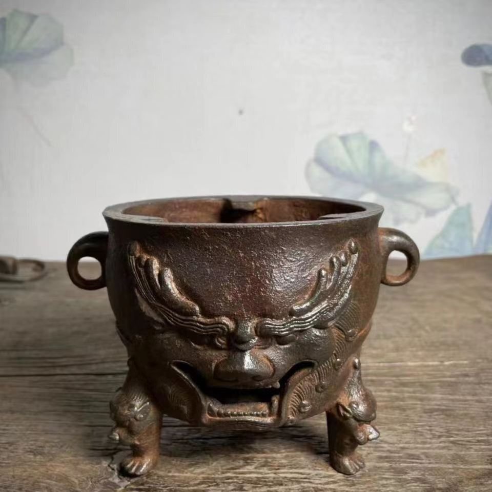 旧鉄器/獣面ストーブ/炭火盆/鉄香炉/レトロ/実用コレクション/香薫炉★鉄製★鉄器★装飾品