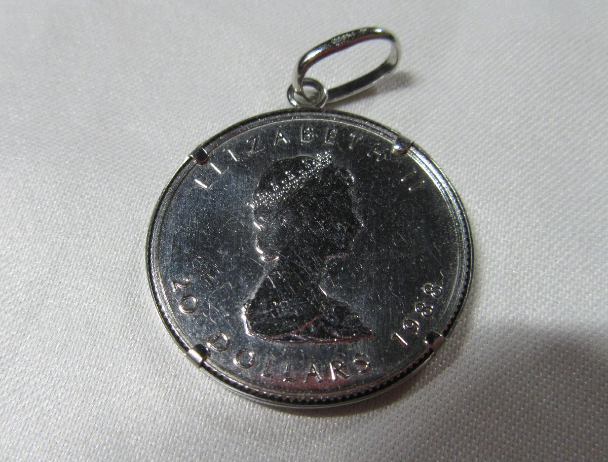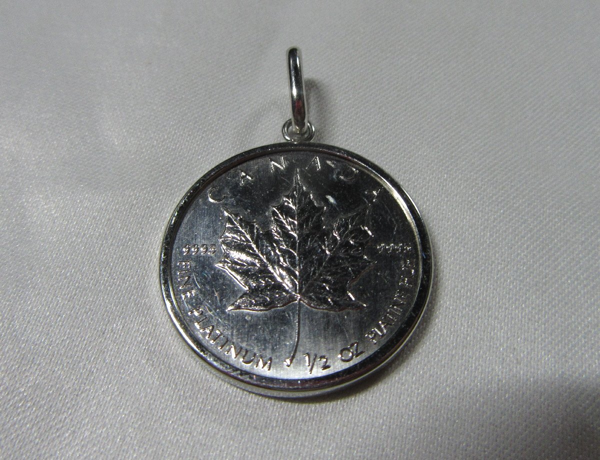 Pt999 プラチナメイプルリーフコイン 1/2オンス 1/2oz カナダ 1988年 コインペンダントトップ Pt900 田中貴金属 17.3g 20ドル 中古品