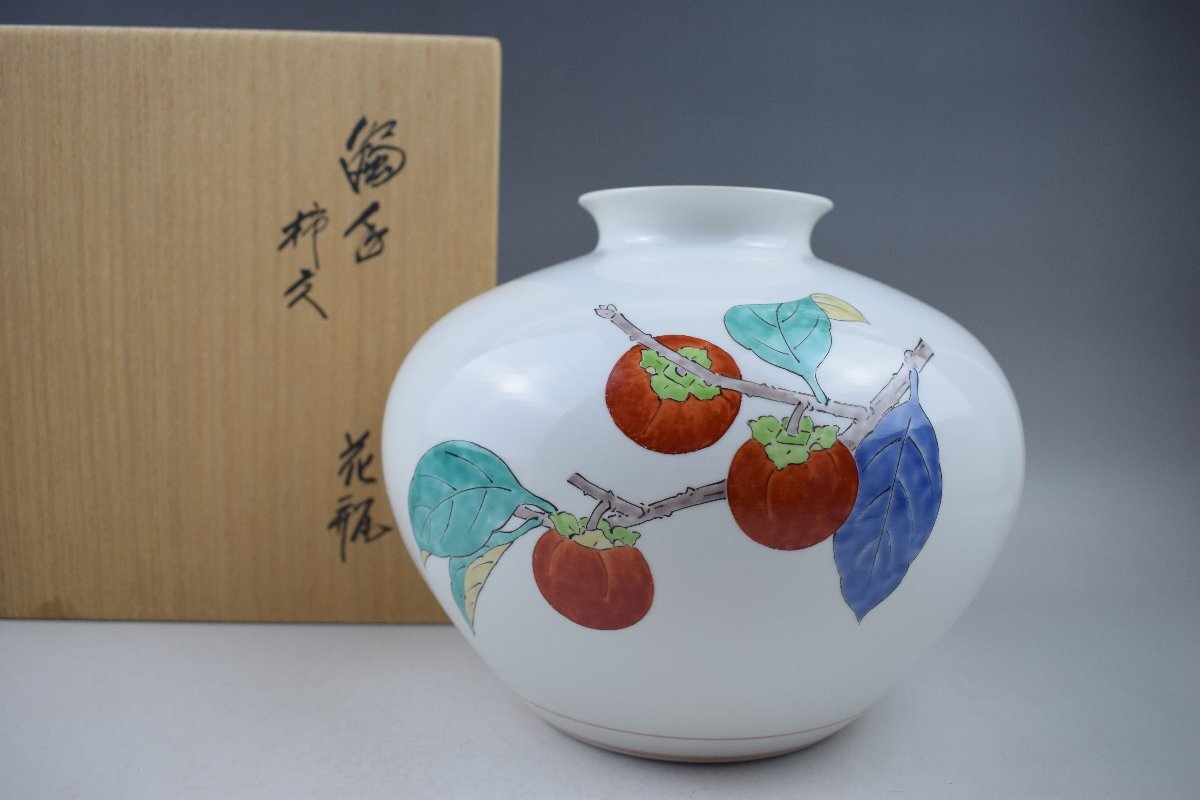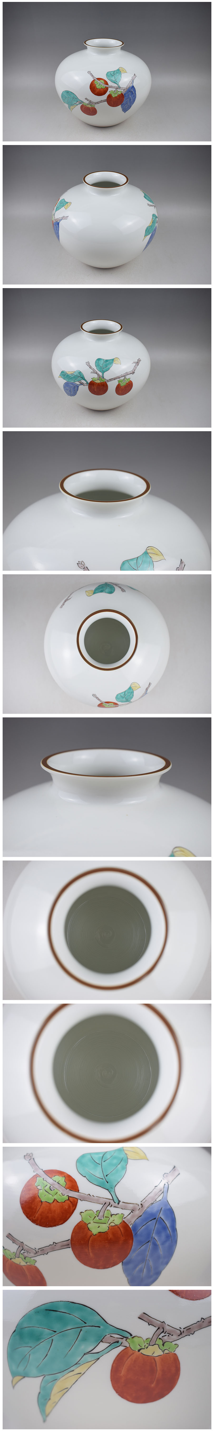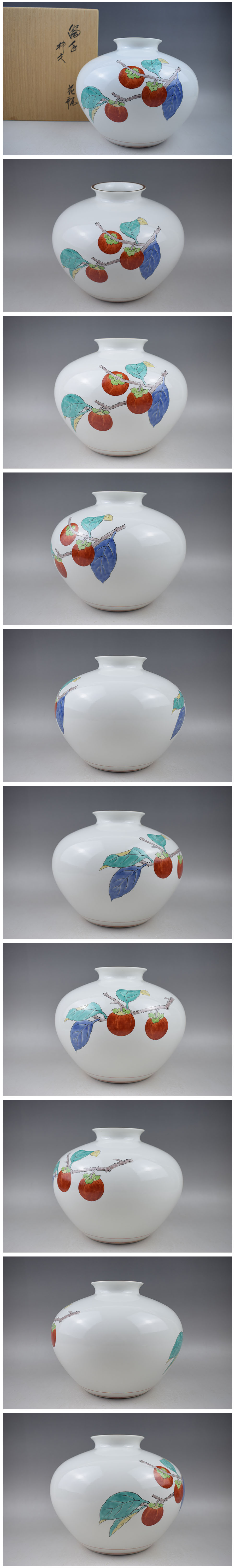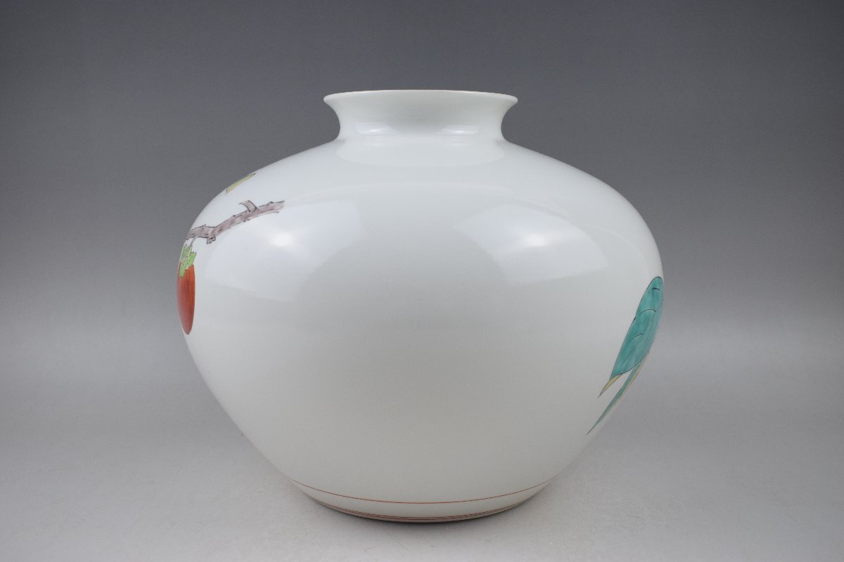【人間国宝 十四代酒井田柿右衛門 本人作 濁手柿文花瓶 共箱 真作保証 】
